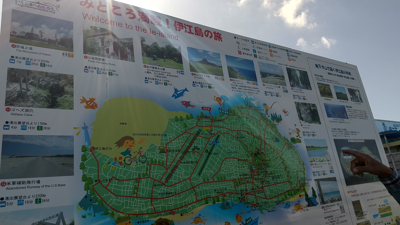 伊江島の観光名所の1つ。島内の移動はレンタカー、バイク、自転車ですが予約なしでは予定していたバイクは借りる事ができず、フェリーターミナルから2時間おきに出ている真謝行き乗り合いバスで行きました。