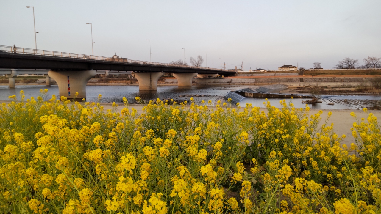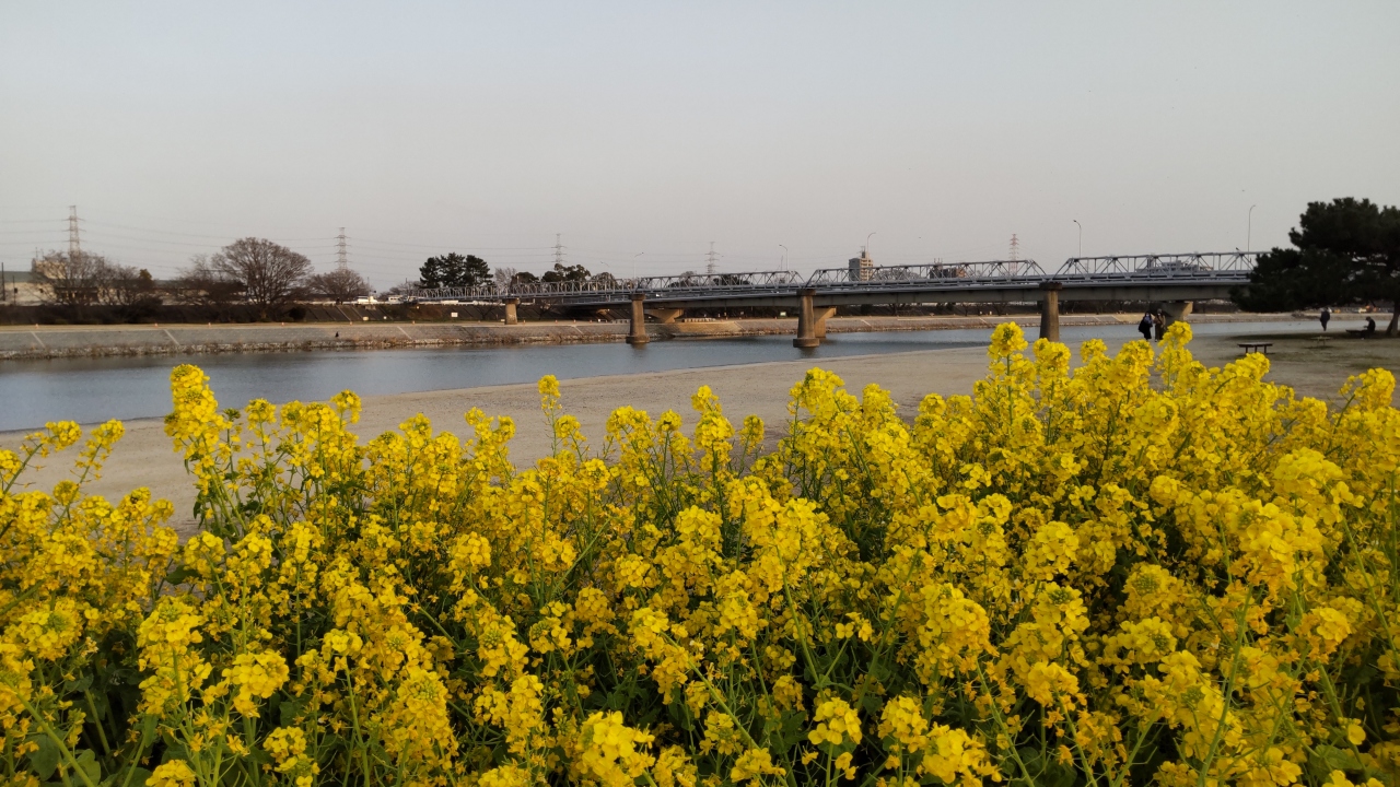 武庫川河川敷は、四季折々の花を楽しむことができます。サイクリングロードなどもあります。3月に訪問しました。今年も菜の花がたくさん咲いていました。春の訪れを感じるスポットです。数人の方が記念写真を撮っていました。