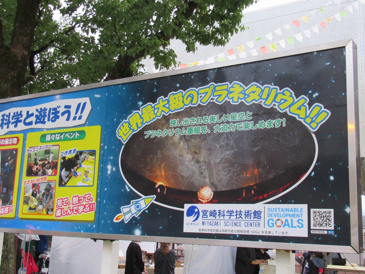 宮崎中央公園の敷地内にあって、世界最大級のプラネタリウムを併設し、屋外にはシンボル的な存在であるH-Iロケットの実物大模型が展示されています。