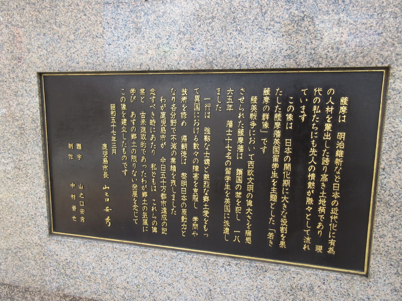 高さは12メートルほどあるそうで、日本の開国期に、国の内外で活躍した薩摩藩英国留学生を主題とした「若き群像」だそうです。