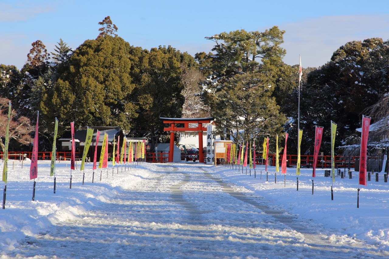 雪と楼門の組み合わせは本当に絵になります
