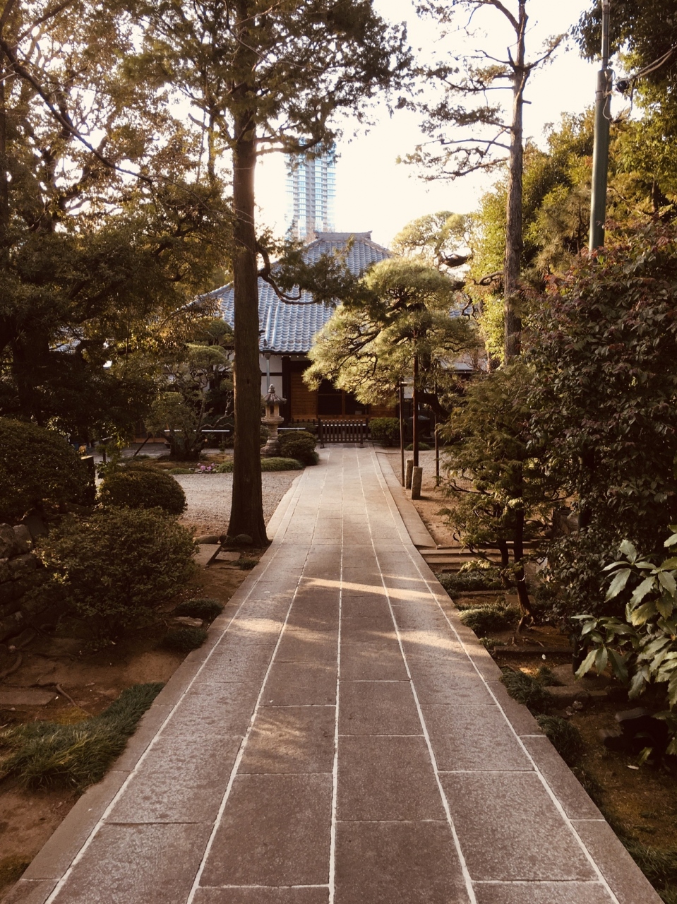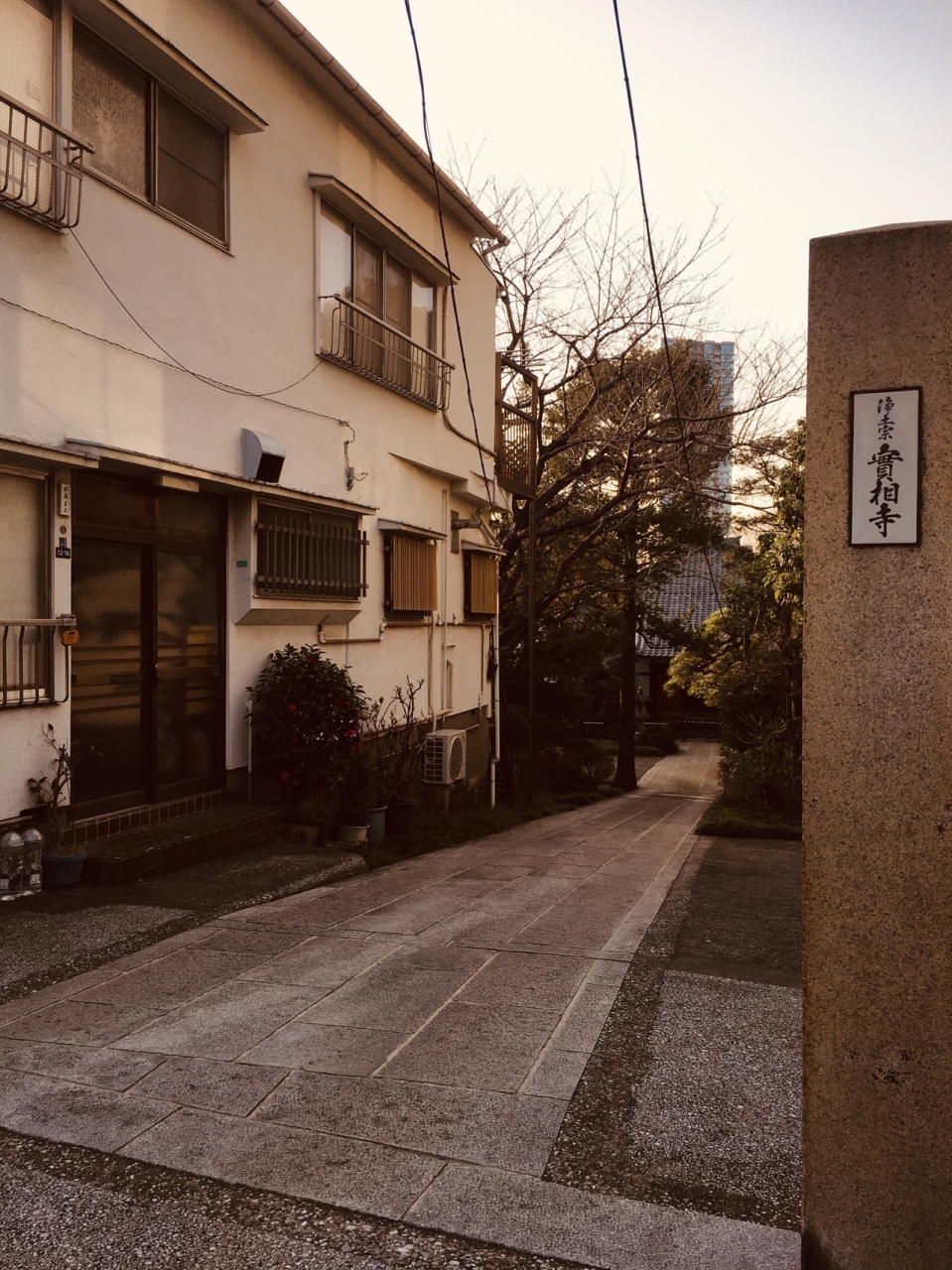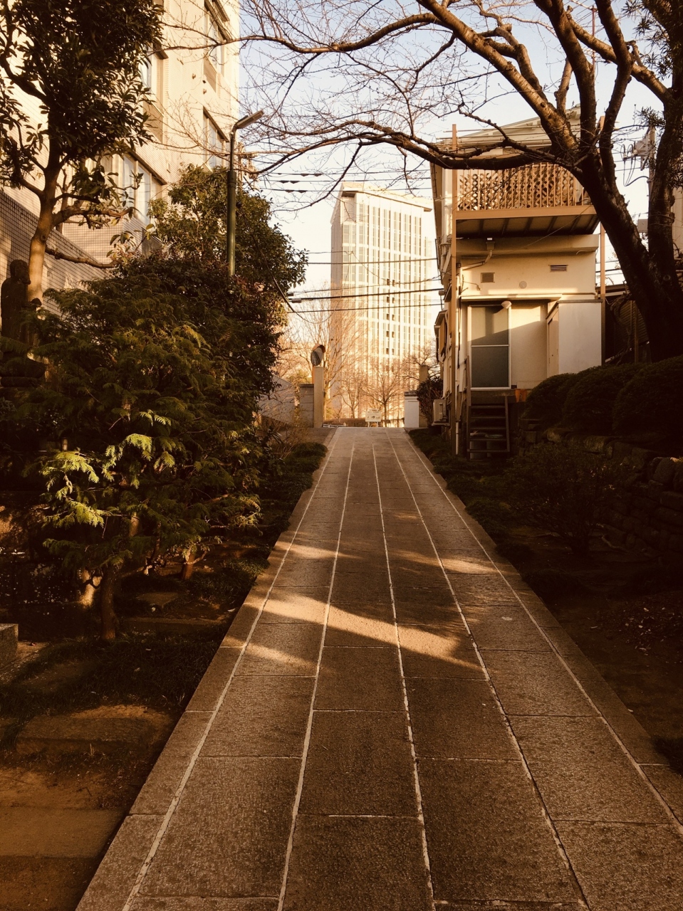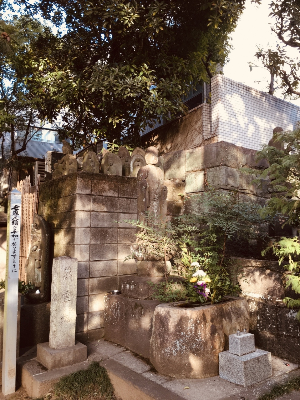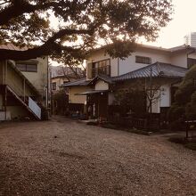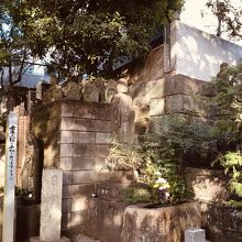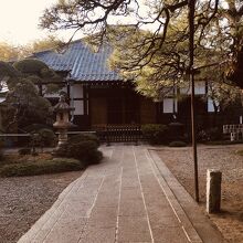 通り沿いから逸れた坂道を下ると境内で、本堂の横からも出入りすることが出来ます。境内はたくさんの木々が植わり、年季があるお地蔵さんがありました。墓地は本堂の横にあり、木々が多いので暗めの境内でした。地面に砂利でした。