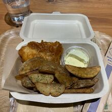 海沿いのフードコート、サカタントに入っているフィッシュ&チップスの店です。一人でランチを摂りました。タラのフィッシュ&チップスをいただきます。本場イギリスではビネガーが定番ですが、ここではタレを選ぶことができるのでタルタルソースにしました。カラッと挙がっています。サメのフィッシュ&チップスも置いているのですが、この日は売り切れでした。