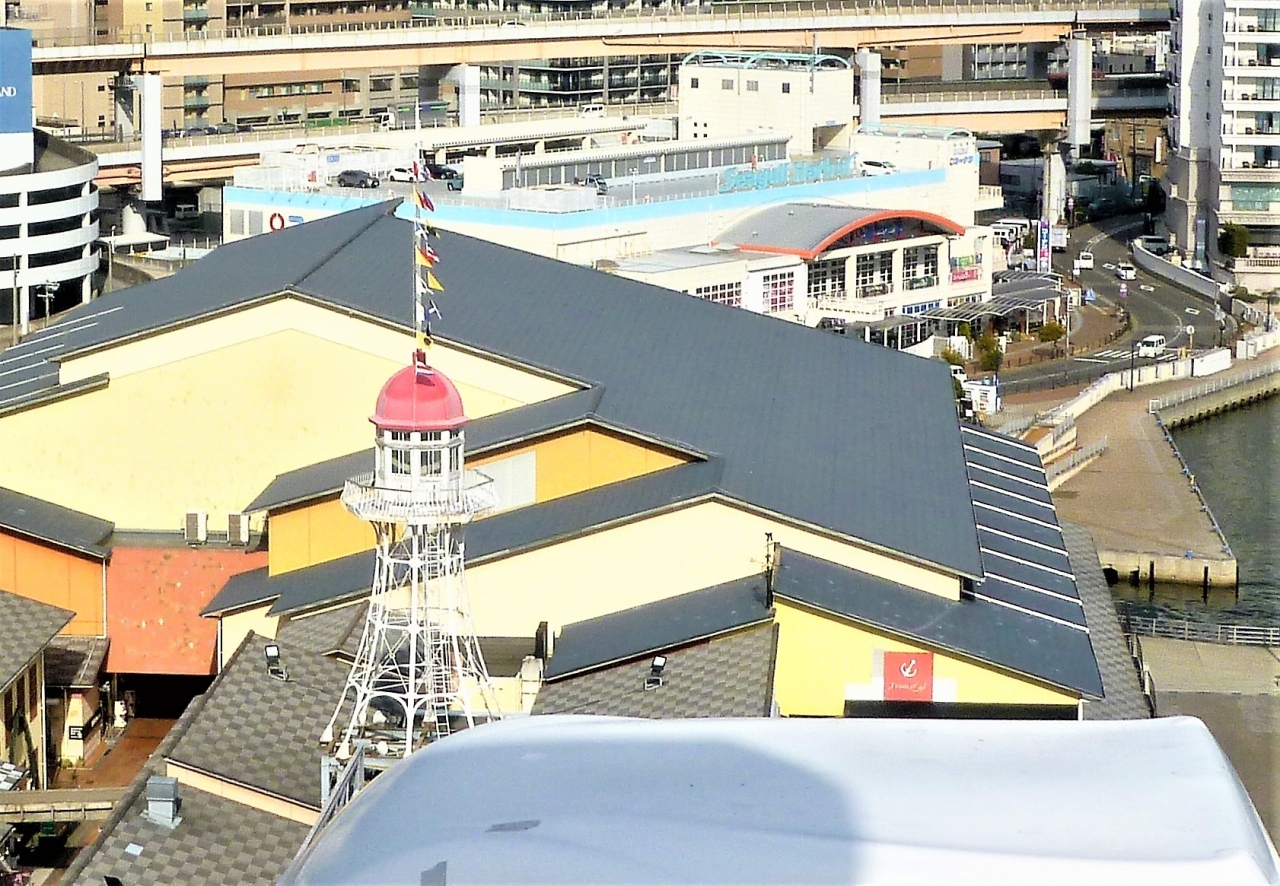 観光で神戸港を散策し、`モザイク観覧車`に乗りました;ゆっくり動いたので周りの風景が眺望できました;神戸市街地/六甲の山並みも/当然ですが神戸港も! ふと、ハーバーランドのUMIEモザイク屋根に`旧信号所`がありました…旧-新港第5突堤信号所(観覧車に乗る前に見学)と同じシルエットで旧-新港第4突堤信号所(大正10年;第5突堤と同時期)でした、ハーバーランドのUMIEモザイクに移築保存でした☆ ハーバーランドの`船に関するモニュメント`も正確ですね♪