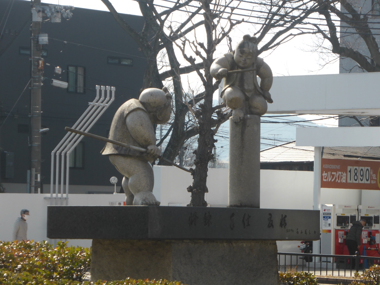可愛い牛若丸と弁慶の像