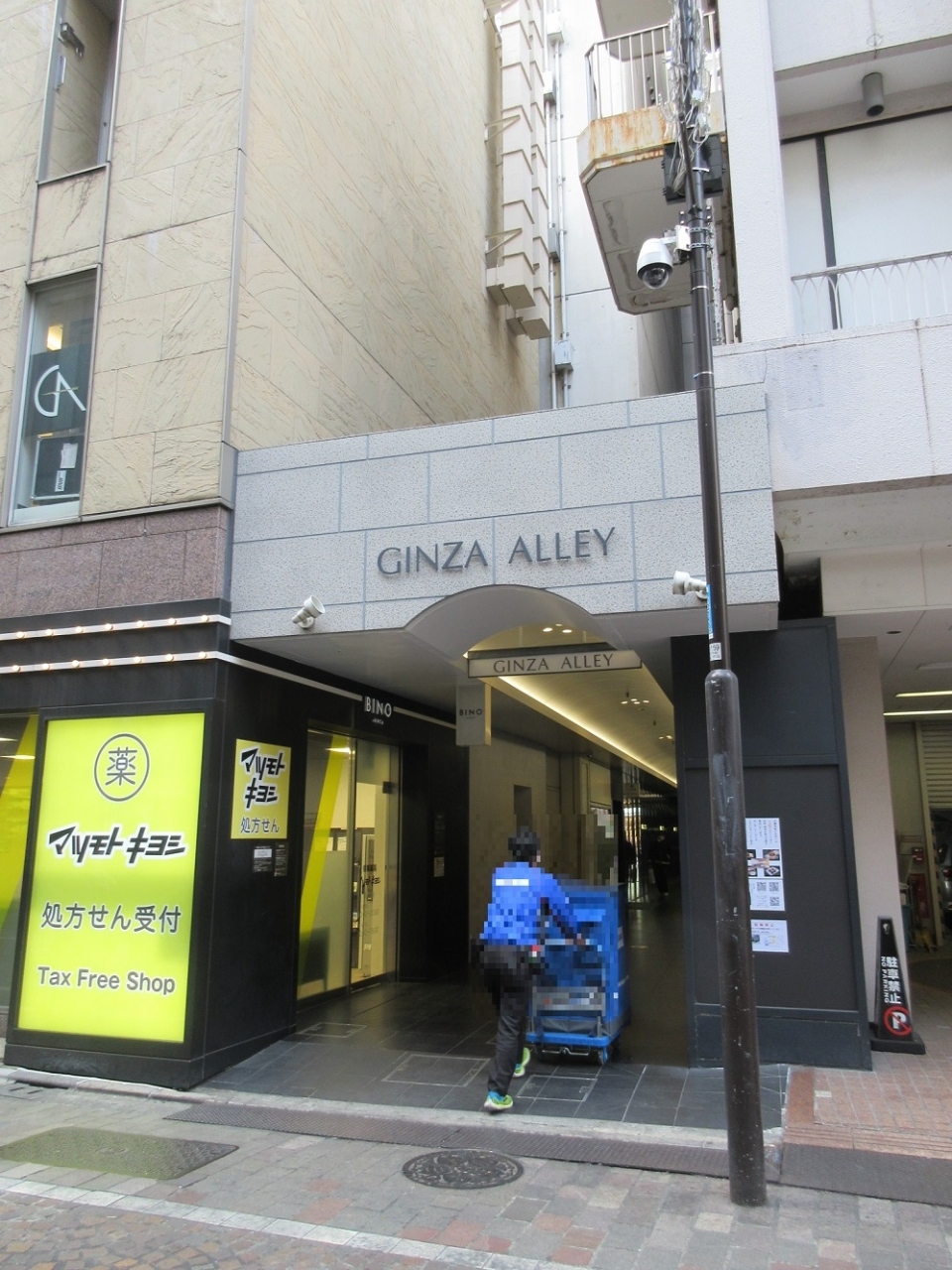 銀座あづま通りから中央通りに戻ろうとした際、丁度宅配便のお兄さんが入っていくのを見かけたので、後を追うように入ったのがこちらの【GINZA ALLEY】で予想した通りビルを通り抜けて銀座中央通りまでつながっていました。途中には物販の店もあってなかなかユニークな探検気分が味わえました。