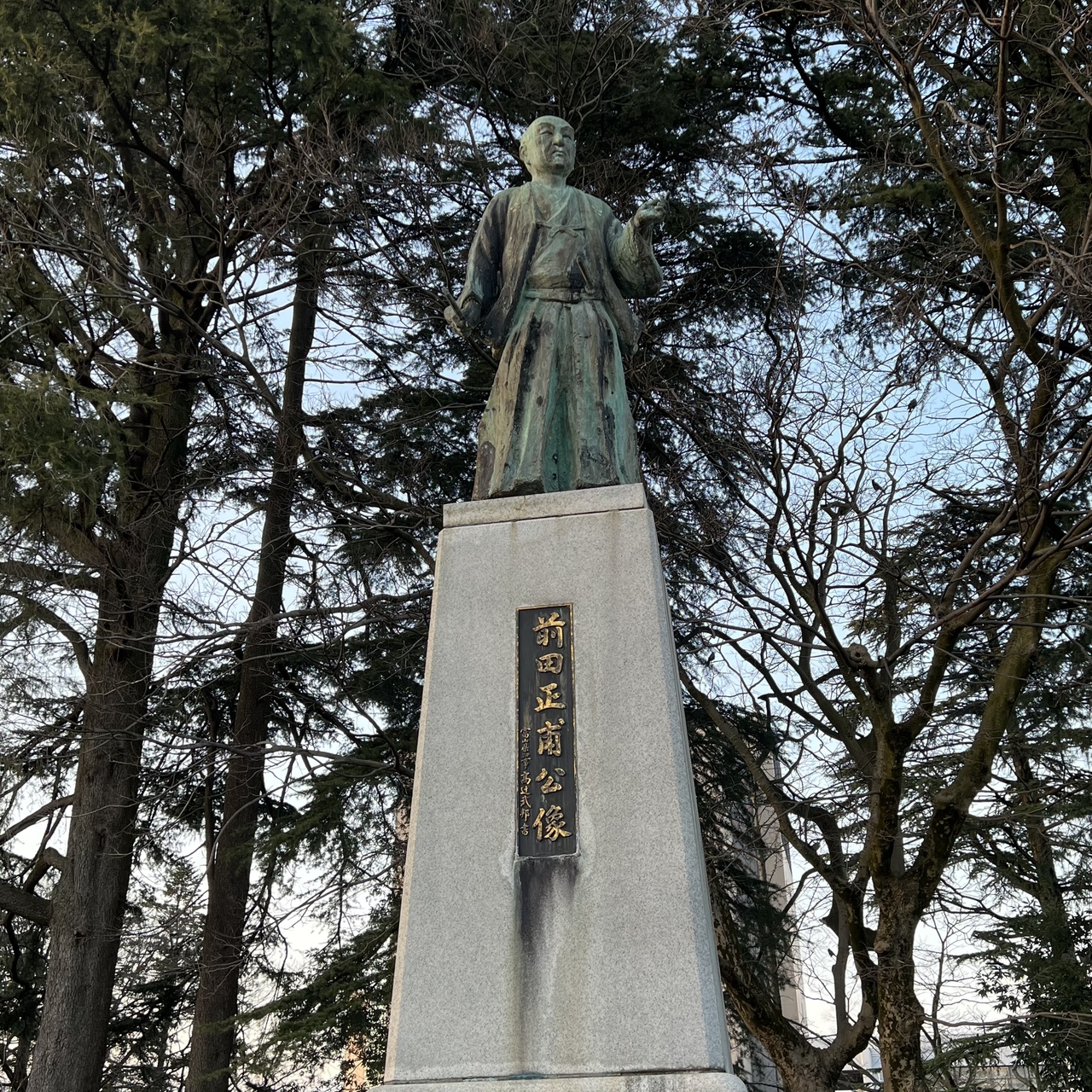 富山城址公園内の一角に越中富山藩第二代藩主前田正甫像がありました。