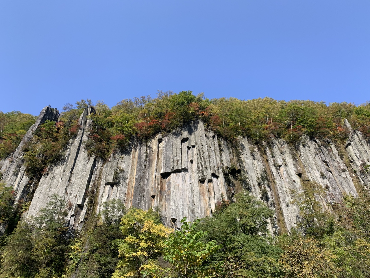 思わず穴場に来た感じで凄い柱状節理の断崖がすぐ目の前に広がっていました。石狩川支流の忠別川上流にある渓谷であまつ岩、涙岩、七福岩など長い年月をかけて作られたいろんな形の柱状節理が見れます。遊歩道から5分くらい歩くと羽衣の滝もありました。