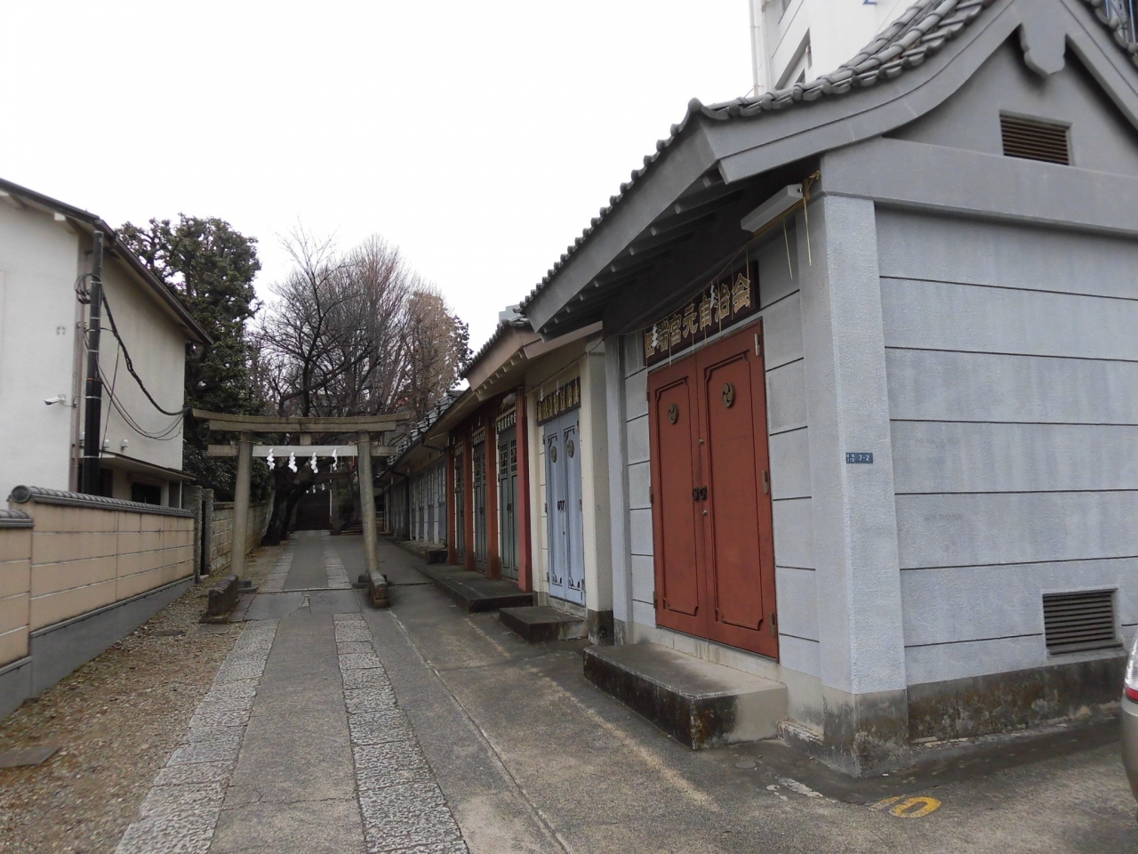 田端の赤札不動にお参りに行った時に、隣接した場所に神社があったので、合わせてお参りに立ち寄りました。細長い参道脇には、神輿庫が建ち並んでいて、その先に社殿に向かう石段がありました。境内はそれほど広くはありませんが、神聖なパワースポットらしい雰囲気が感じられました。