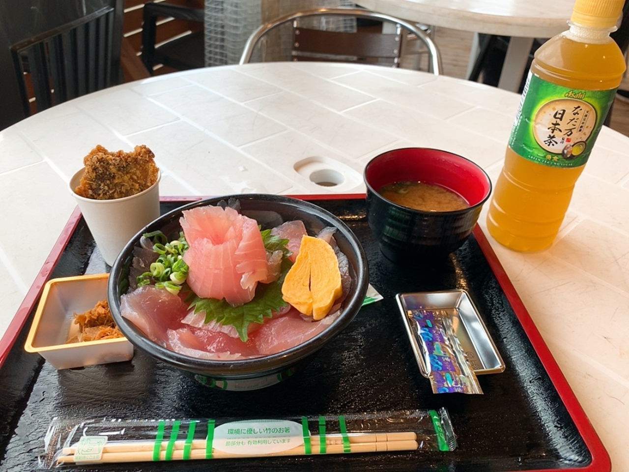 奥には、飲食店も何軒かあり、まぐろ丼やお寿司などを楽しむ事が出来ますが、まぐろ丼お目当てなら、早めに行かないとダメです。 私は14時過ぎに行ったら、1番安い1500円のまぐろ丼しか残っておらず、あんまり美味しくなかったです…。