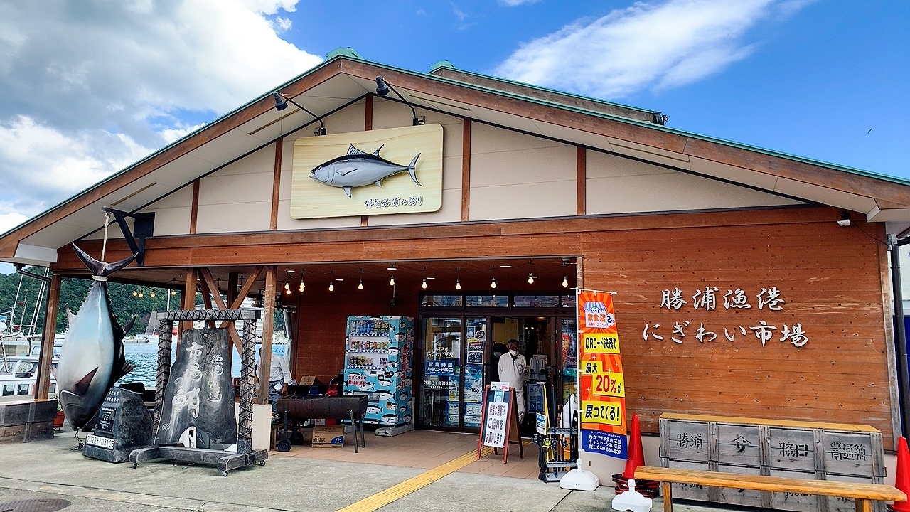 入口では、まぐろのモニュメントと記念写真が撮れます!