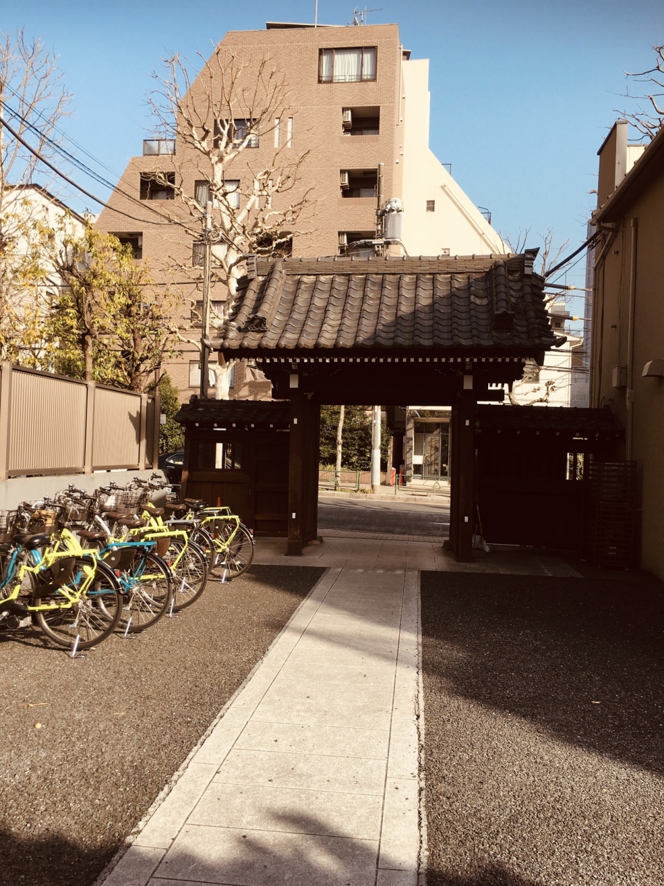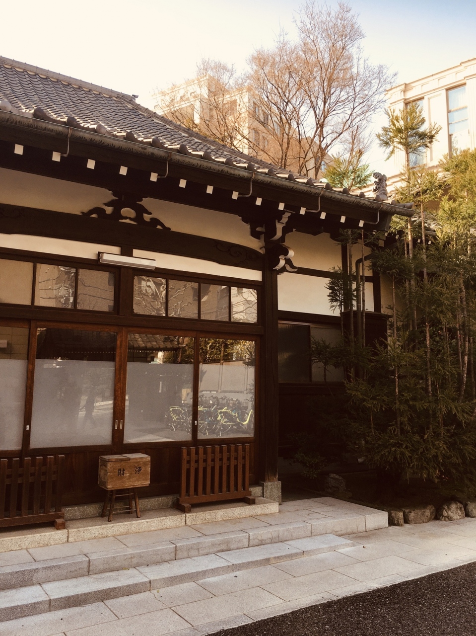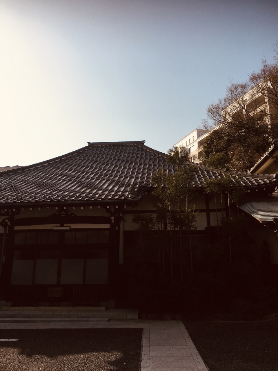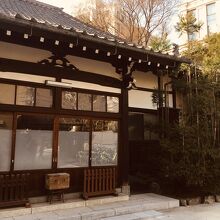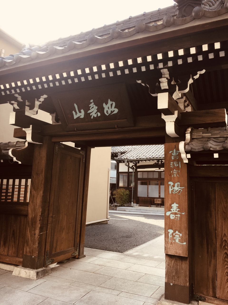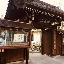山門の左側には寺の提示版がありました。寺の中でも山門が目立ち木造り感を感じ、瓦屋根も立派でしたが、境内は小さめで古民家のような屋根が大きな本堂でした。小さな浄財箱がさりげなく置いてあり木が数本立っていました。