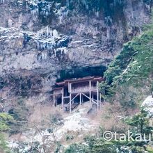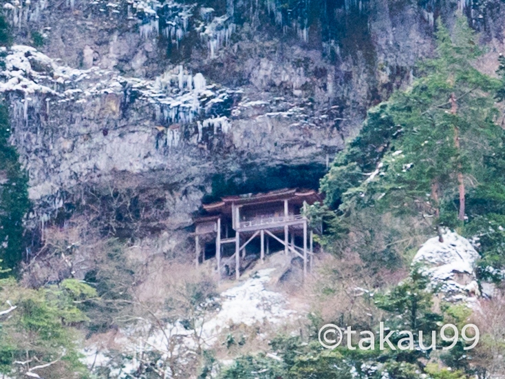 「三佛寺」の投入堂は国宝に指定されています。過去に死者がでているほど登るのは危険なので、道路のそばにある遥拝所から参拝しました。断崖絶壁に建てられた投入堂がすごすぎます。遥拝所にある大きな双眼鏡でよく見えました。