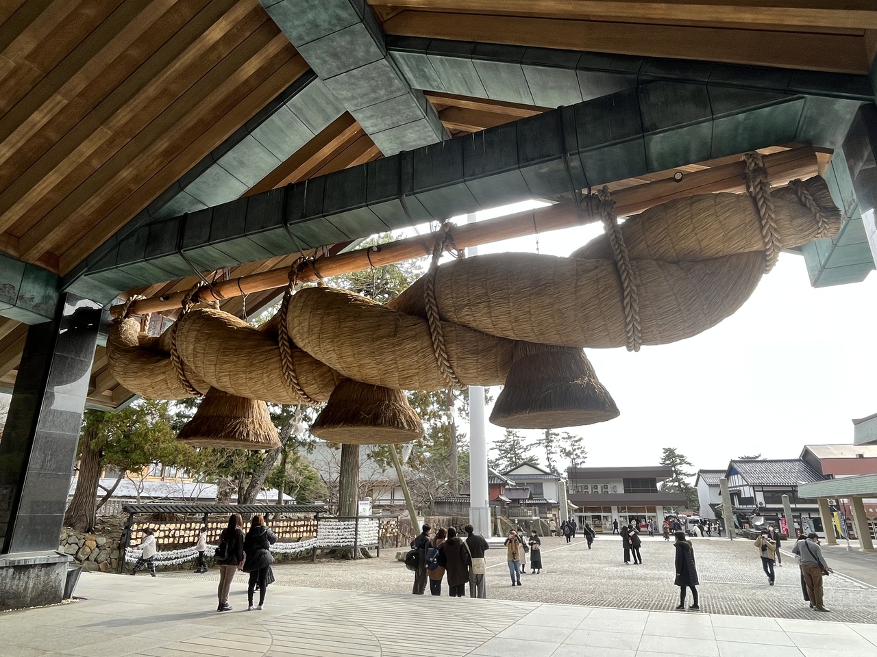 有名な大しめ縄は圧巻で、見応えがあります。スマホで写真を撮っていると、宮司さん?のような方が代わってくれ、たくさんシャッターを押してくれます。色んな方に声を掛けてはシャッターを連写し、一種のパフォーマンスになっていました(笑)
