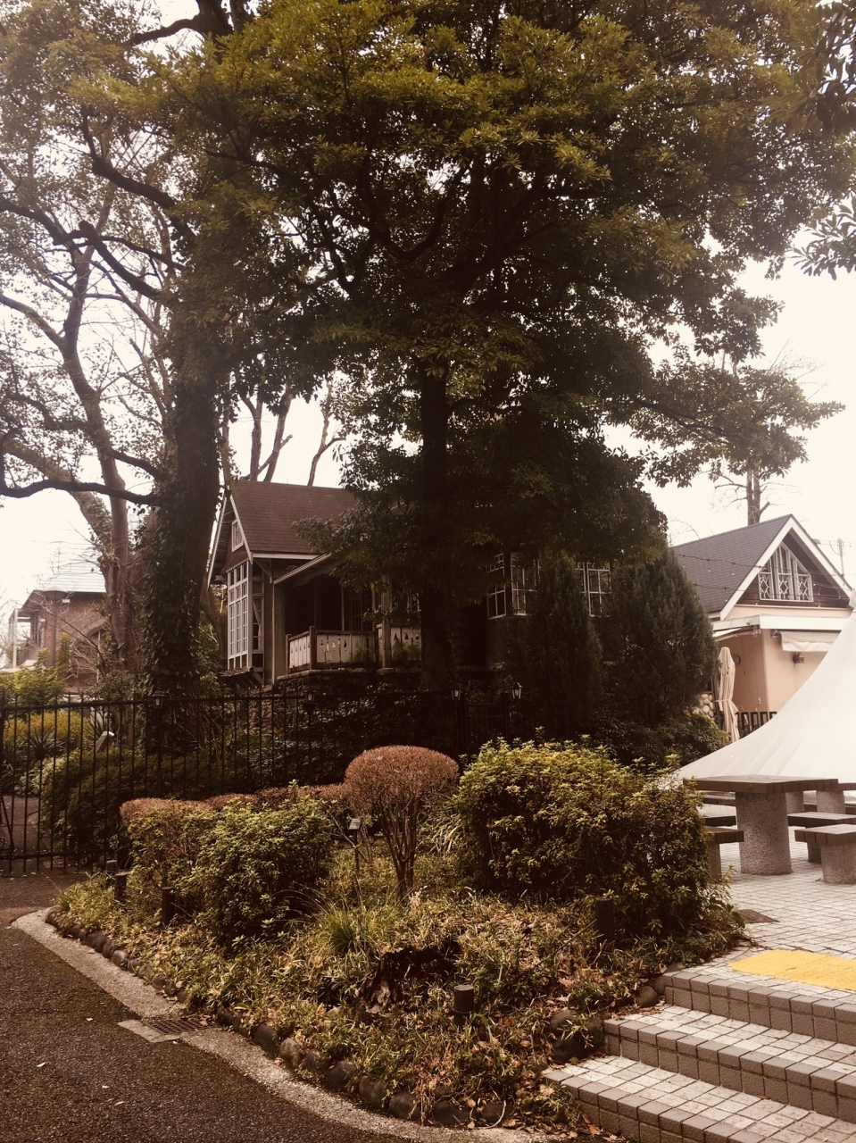 洋風の草木に囲まれた建物で、囲いで囲ってありました。下が石で、上が木で出来た建物で、ペンションや喫茶店のような光景でしたが、ガーデンウェディングも出来る結婚式も出来る建物です。昭和時代は公園資料館でした。