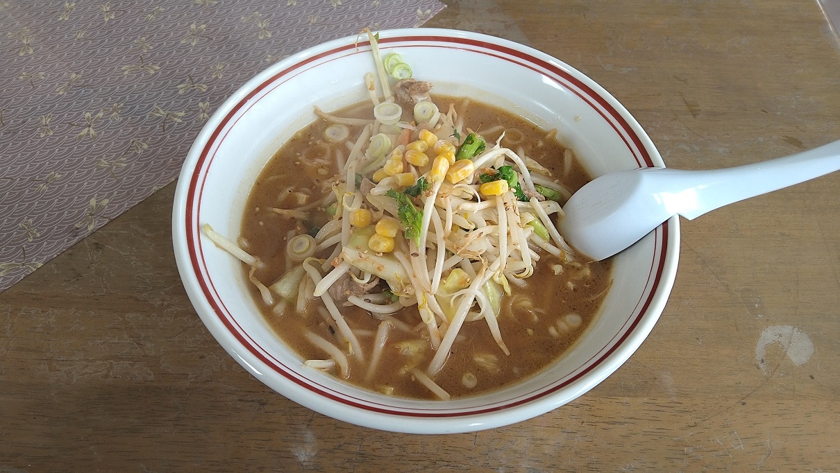 千葉県柏市十余二の国道16号線沿いにある駐車場完備の定食屋さんです。ラーメン系のメニューもあり、ランチでみそラーメン770円をいただきました。具はモヤシ、キャベツ、コーン、青菜、豚肉の炒め物と白胡麻で、柔らかめの縮れ麺と濃厚な味噌スープの一品。野菜の甘みがスープに溶けているのか?甘みを感じるスープで、味噌の旨味もあり、美味しいスープに仕上がっていました。