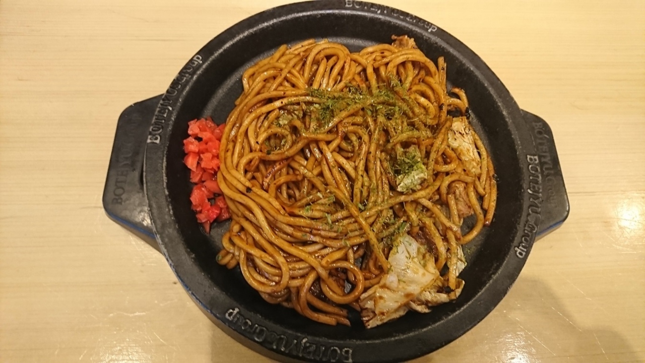 お台場の大型商業施設・アクアシティお台場1階フードコートにある大阪発祥の鉄板焼きのお店です。夕食で焼きそばをいただきました。キャベツなどが混ざり、モチモチとした太麺の焼きそば。ソースはやや甘めでしたが、美味しい味付け。モチっとした麺も美味しかったです。