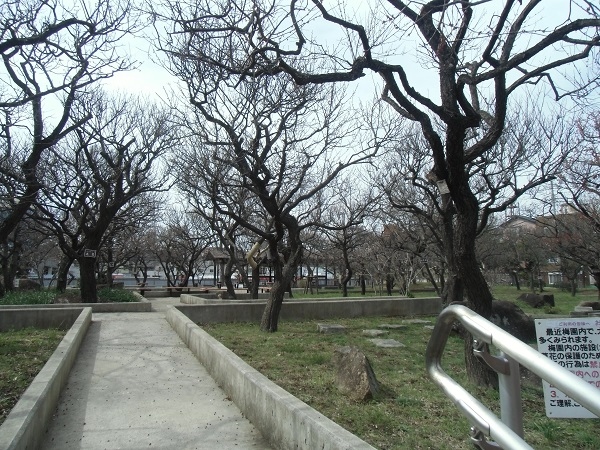 梅園には四阿や回遊できる園路、ひと休みできるベンチがあり、ゆっくりと梅を鑑賞できます。