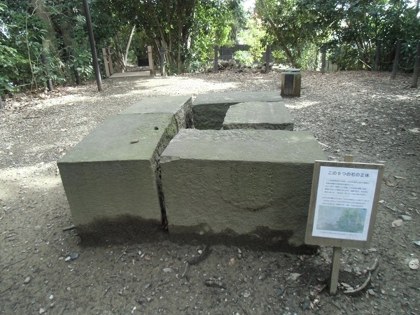 緑地の一番奥に少し高くなっている場所があり、そこに5つの石があります。