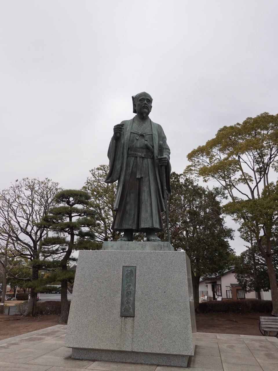 水戸駅周辺を散策していると、あちらこちらで徳川光圀公の像を目にします。駅の北側は助さん格さんとの3ショットなど、ドラマの水戸黄門を思わせるものが多かったです。一方で、千波湖の西側湖畔には、大きな台座を持つ立像がありました。背後には緑があり、一番風格を感じる像でした。