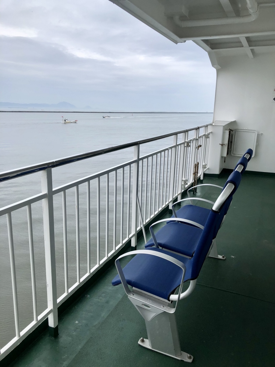 一週間の旅のうち、初めての九商フェリーの日だけが雨なんて…。