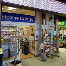 「水戸観光案内所」は、JR水戸駅南北自由通路の途中、改札口のすぐ隣にあります。広くはないですが、資料などは充実しており、係のかたも駐在していて丁寧に案内してくださいました。私たちはレンタサイクルを借りる前に訪れ、色々とアドバイスをいただいたおかげでスムースに観光することが出来ました。