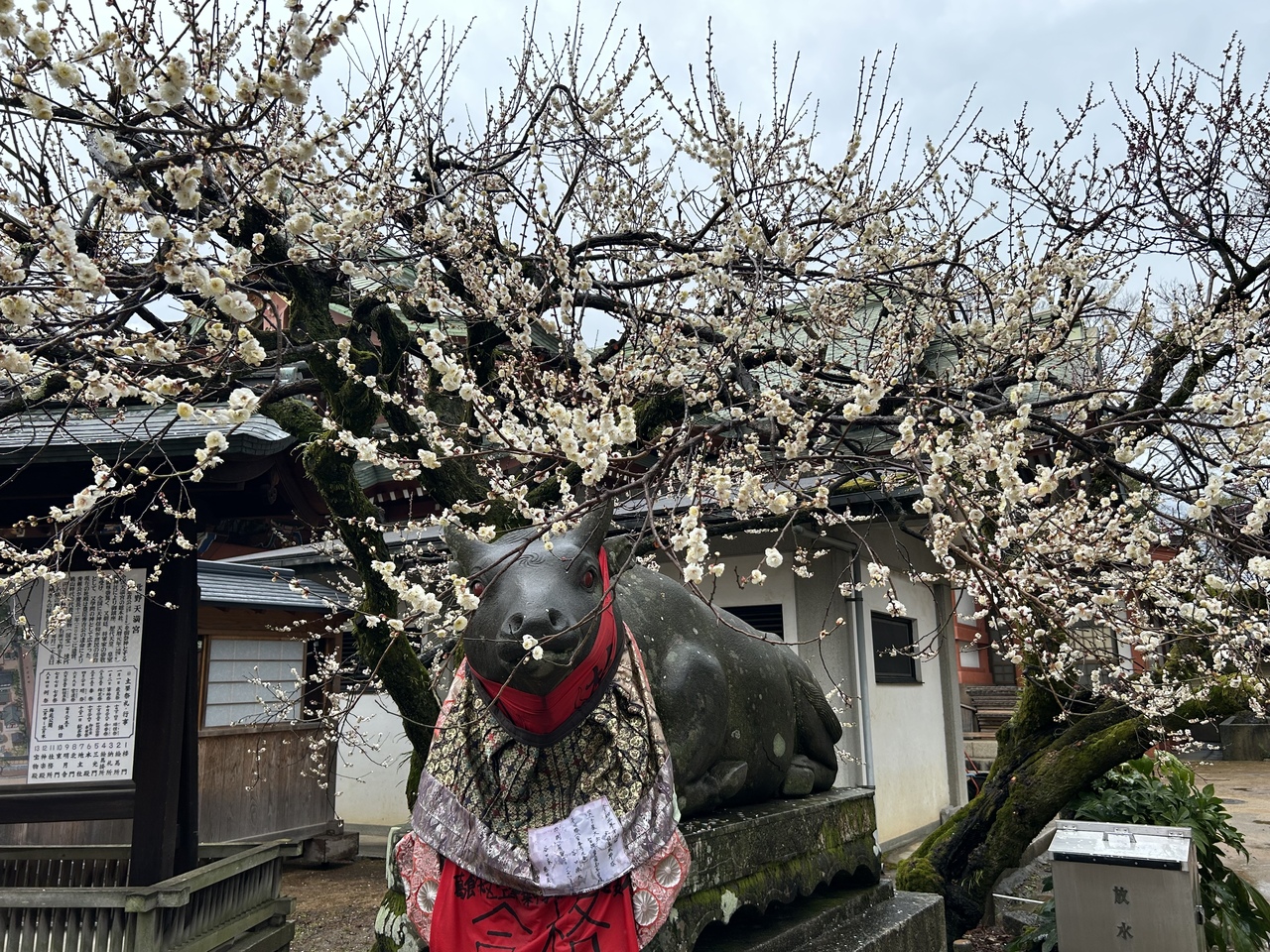 少し早かったですが、梅が咲き始めて梅と丑さんのコラボが春らしい景色でした。
