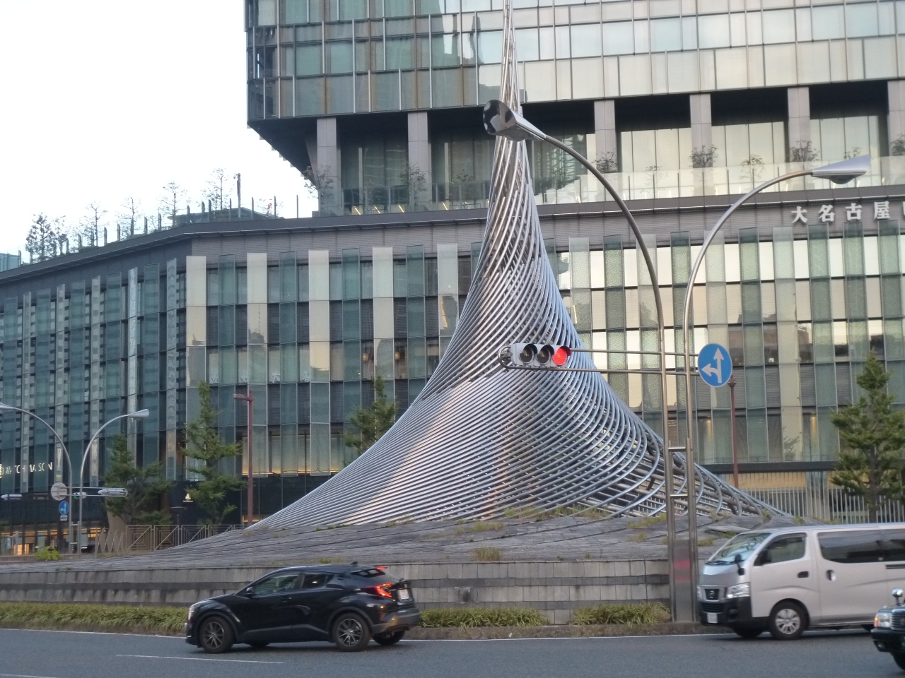 名古屋駅前桜通口前にそびえる名古屋大ビルヂング。現在の高層ビルは2代目で初代は50年にわたって同じ場所で市民に親しまれてきた同名のビルでした。見た目はすっかり変わりましたが、初代の記憶も残されているそうです。車寄せにある幅約8mの巨大モザイク壁画「海」は旧ビル1階のエレベーターホールにあったものだそうです。
