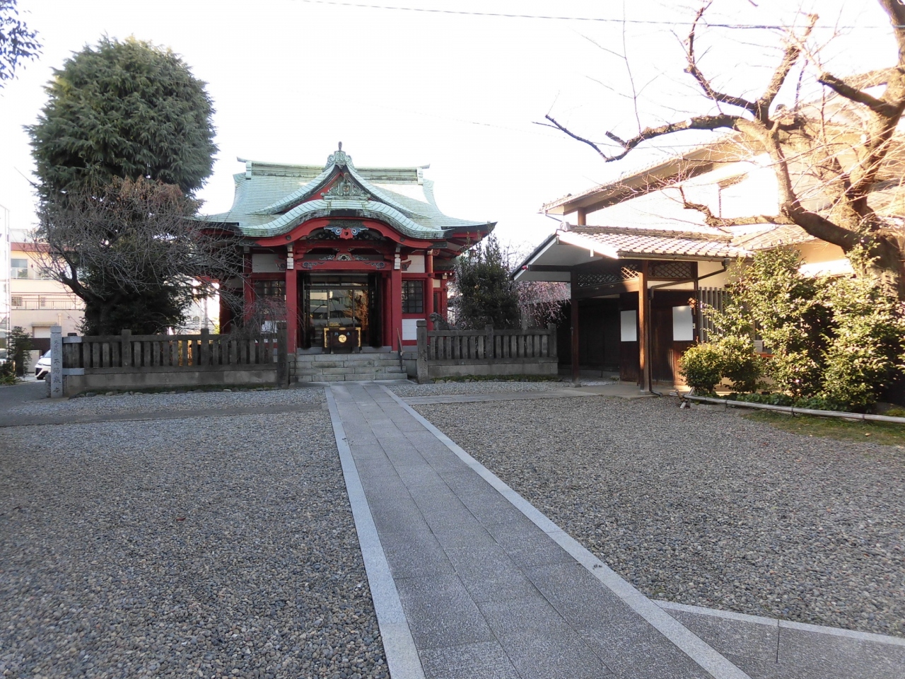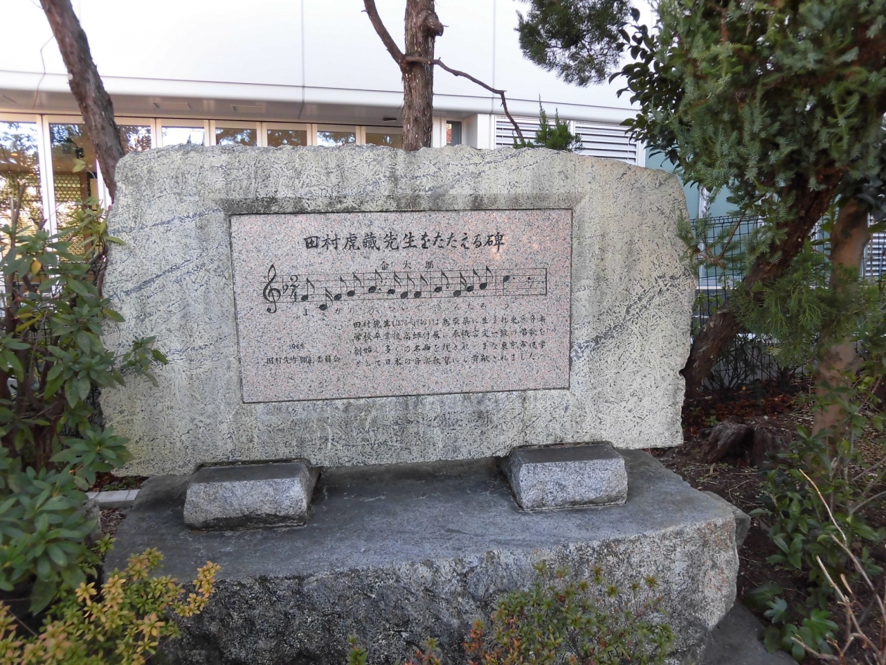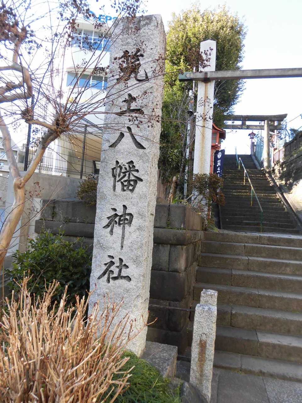 新宿区の筑土八幡町近辺を散策しているときに、町名にもなっている筑土八幡神社にお参りで立ち寄りました。鳥居から急な石段を登ると、いきなり開けた感じの境内に出ます。本殿も瀟洒な造りで、狛犬の姿に由緒ある神社であることを感じました。また、境内に石碑が立てられていて、有名な金太郎の作曲者、田村虎蔵をたたえた石碑でした。楽譜も刻まれていて、何となく口ずさんで楽しみました。