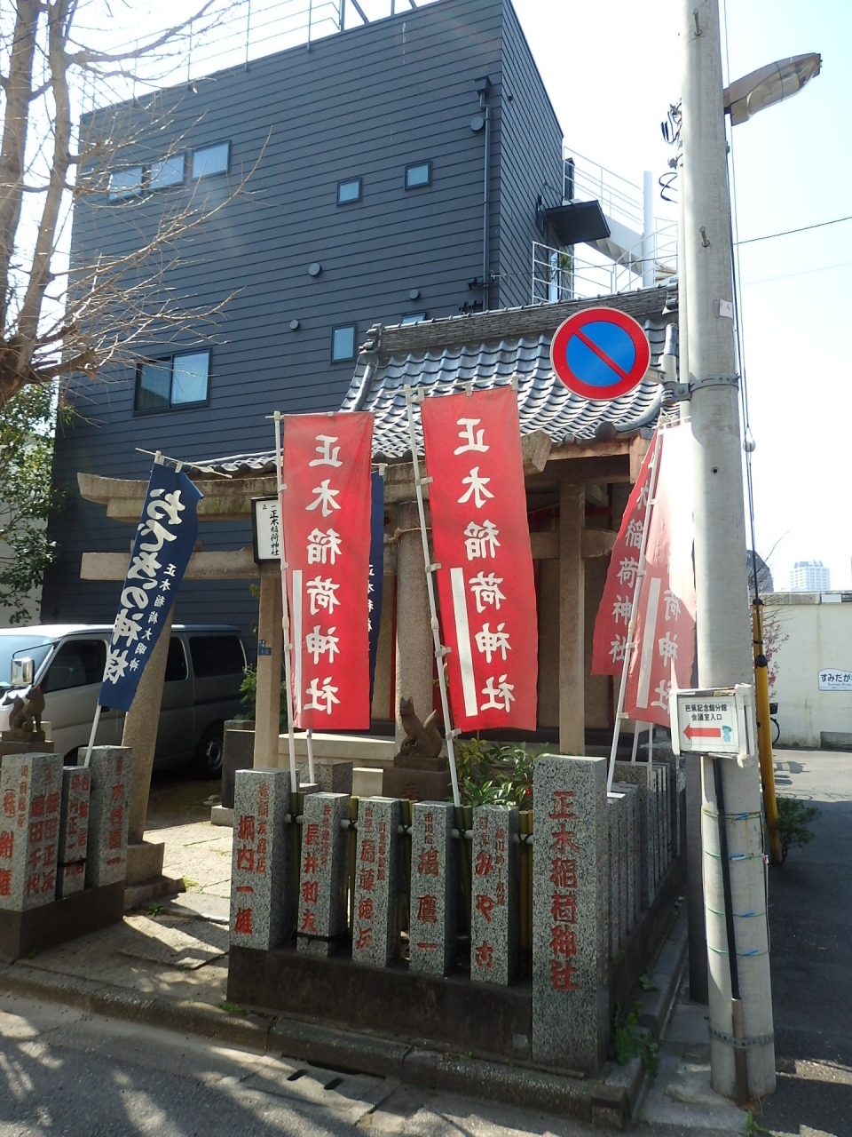正木稲荷神社は芭蕉稲荷神社の先の角地に建っています。創建は不明ですが、江戸名所図会にも記載されており当時は柾木の大木が立っており、隅田川から小名木川に入る目印になっていた事から柾木稲荷神社と呼ばれていたそうです。