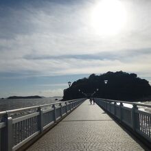 豊橋駅で車を借りて40分ほど、竹島へ向かいました。竹島へ渡る橋のある竹島園地には広い駐車場があり、車で行きやすい場所です。強めの風の中を三河湾に架かる竹島橋を渡り竹島へ向かいました。島の中央部には、八百富神社があり、参拝後は竜神岬まで下りていきました。残念ながら竜神岬辺りの遊歩道は閉鎖されていて、来た道を戻って橋へ戻りました。