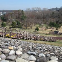 車で西武球場前から狭山湖・多摩湖を通った時に寄りました。多摩湖駅から5分ほどです。多摩湖の第一取水塔の近くに駐車場があります。多摩湖の堤頂の遊歩道、耐震性向上のため強化された堤体の遊歩道、児童遊園や森林などがあります。訪れた平日午前、散歩する人や、児童遊園で遊ぶ子ども連れがいました。取水塔近くの柵に春分の日に行われる多摩湖駅伝大会の幕が張ってありました。ベンチ広場に躍動感ある水の精像がありました。多摩湖のシンボルと言える2つの取水塔と西武球場のドームの屋根を眺めてリラックスしました。