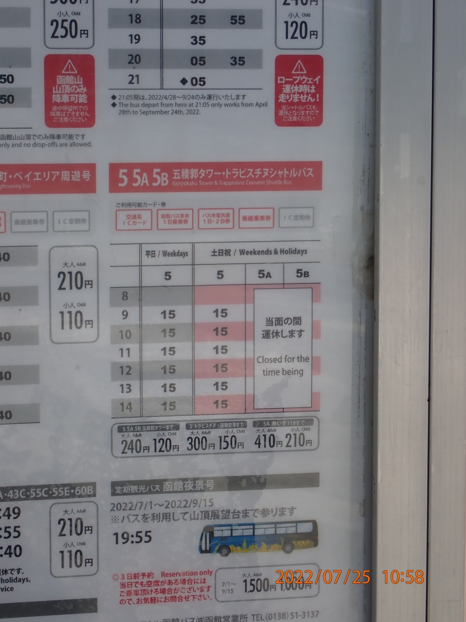函館市観光で利用しました。函館期前バス停の4番乗り場に五稜郭タワートラピスチヌシャトルバス乗り場があります。利用した時は、平日で、9時から14時まで毎時15分発の6本が運行してました。飛行機が遅めだったので、このバスでトラピスチヌ修道院見学後、空港へ向かいました。便利な路線です。