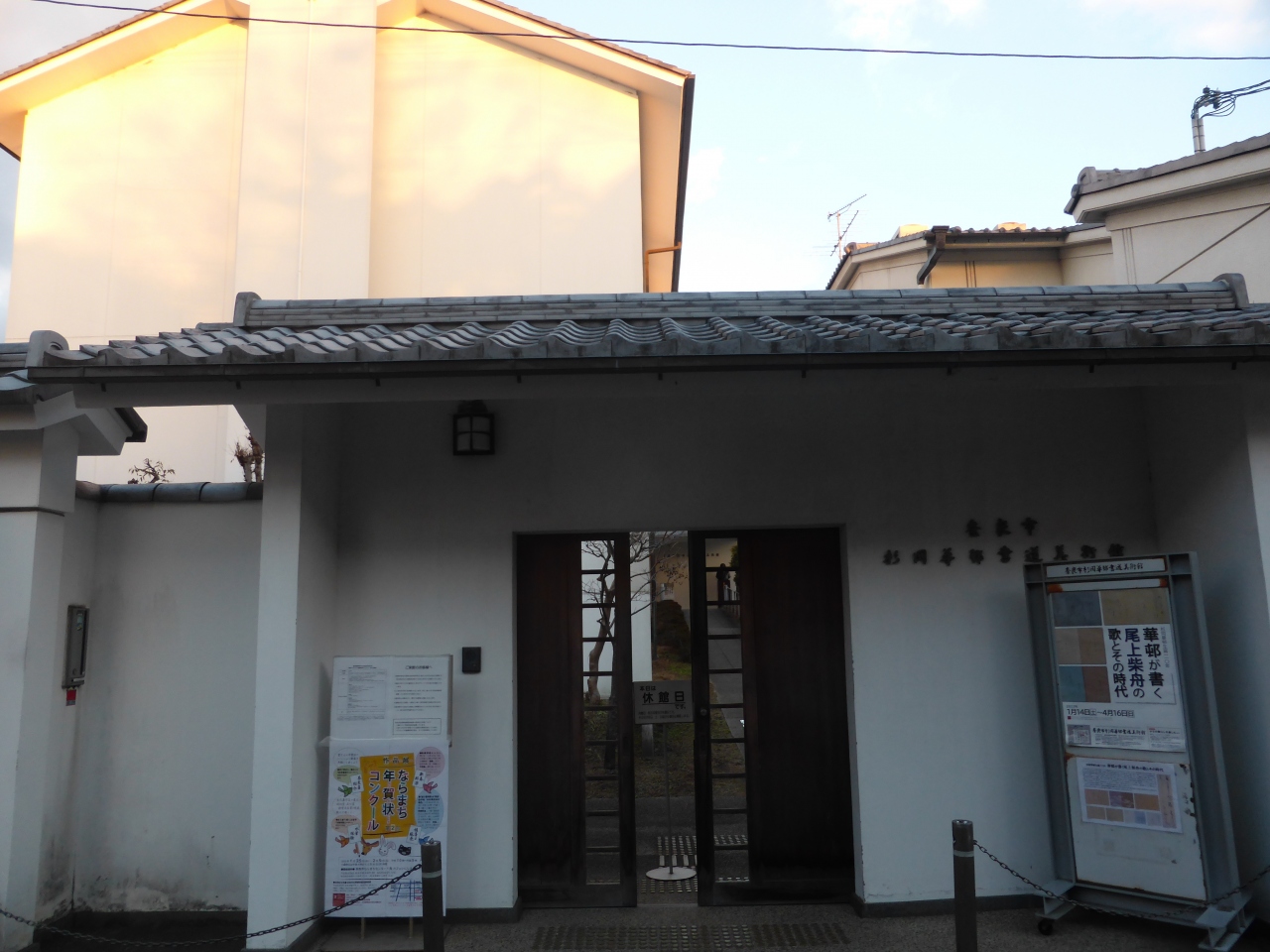 江戸時代から続く町家が立並ぶ「ならまち」のメイン通り・下御門町商店街に建つ白壁の書道美術館。奈良在住で文化勲章受賞の書道家「杉岡華邨」から作品の寄付を受けて建設された書道の美術館です。かな書の第一人者で有名だそうです。当日は残念ながら休館日で、かな書を見られませんでした。