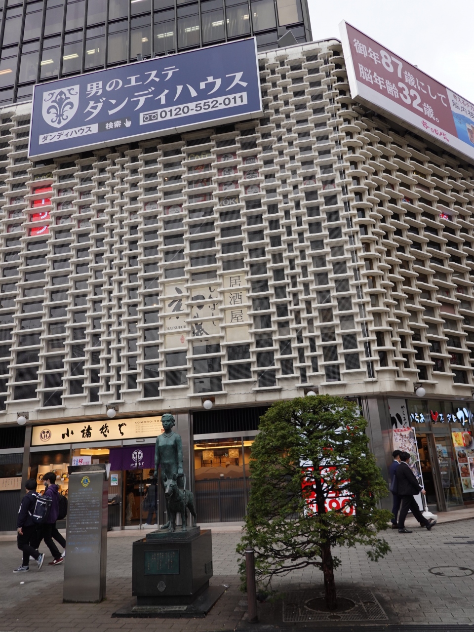 ニュー新橋ビルは、新橋駅日比谷口前に建つ歴史ある商業ビルです。1971年の竣工ですが、この時期としては地上11階、地下4階という規模は異例の大きさだと思います。ショッピングモールやスーパーもまだそれほど一般的ではない時期のことで、画期的な存在だったと思います。ビルの前、SL広場側にある「乙女と盲導犬の像」の像も印象的でした。
