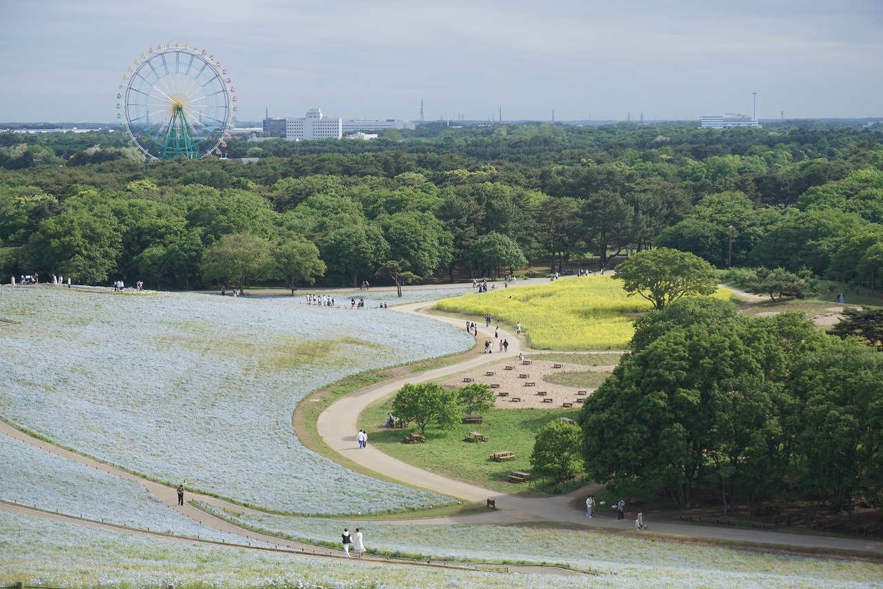 もう有名すぎるスポットですよね。国営ひたち海浜公園のみはらしの丘。春にはネモフィラ、秋にはコキアの花が丘一面に咲きます。シーズンにはいついっても、人、人、人…。写真撮っても人、人、人…。それはもう仕方ないですよね。