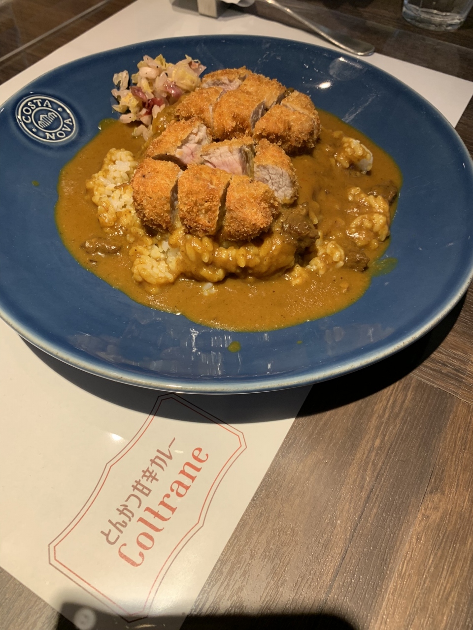 お店の名前は、ジャズのテナーサックス奏者のColtraneの名前から来ており、彼の作品が年月を経ても変わらない記憶に残るような名作であるように、お店のカレーもいつまでも美味しさが記憶にのこるように、変わらない味を目指しているそうです。(お店のホームページより)お昼前にお店に入りましたが、あっという間に満席になりました。カレーのルーはしっかり煮込んだお味で、甘さと辛さが絶妙でした。お店も清潔でスタッフも親切で、また行きたくなるお店です。月曜日と火曜日のメニューにはスープカレーもあります。