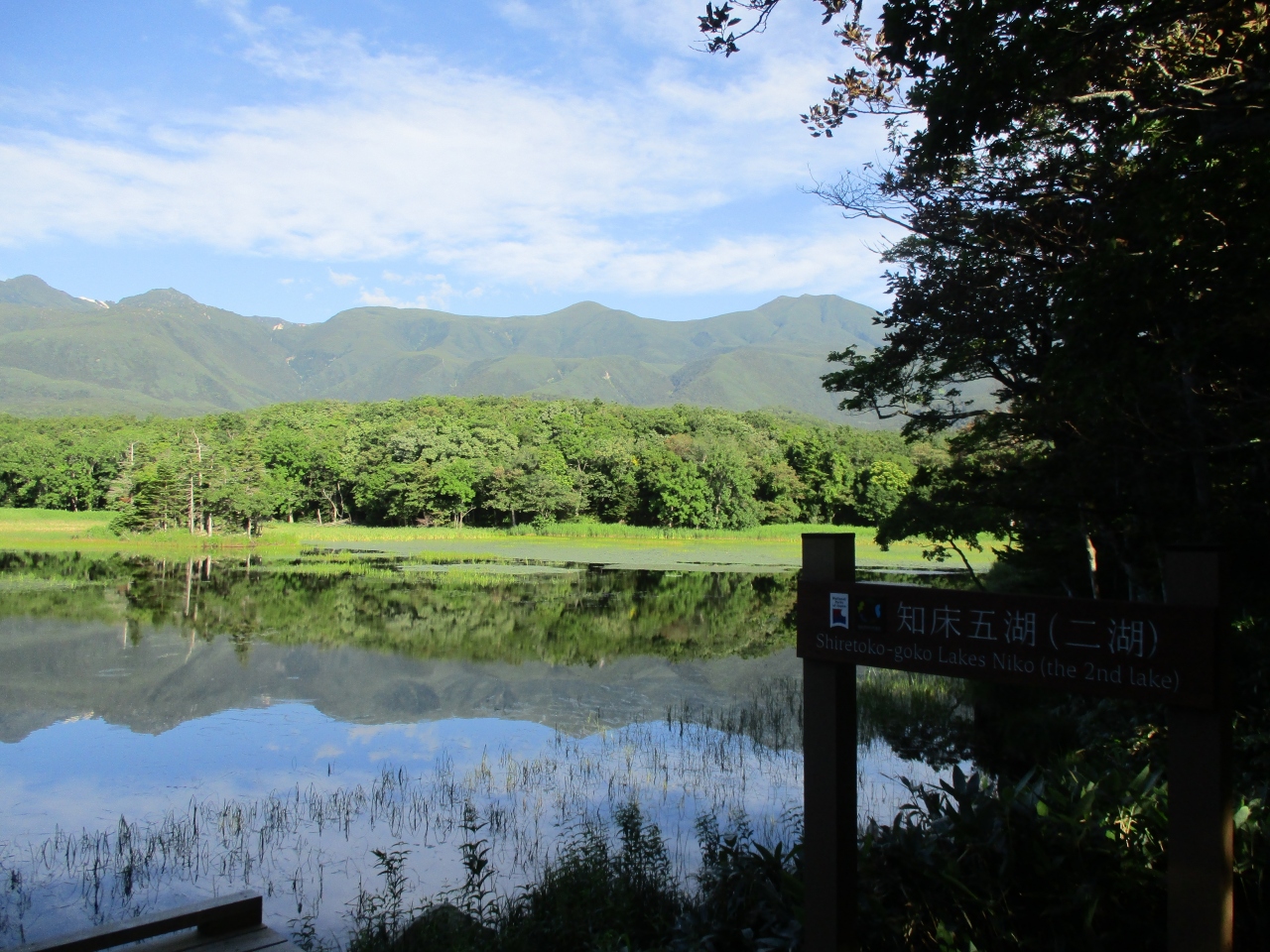 知床五湖のうちの一つで大きさは三湖と並んで大きな湖です。湖面に映る羅臼連邦の山々がくっきりと映しだされていて、印象的でした。知床語と遊歩道の簡易コースでも見ることはできますが、ロングコースで回ったほうが、湖面の羅臼連邦もしっかりと見ることができ、お勧めです。