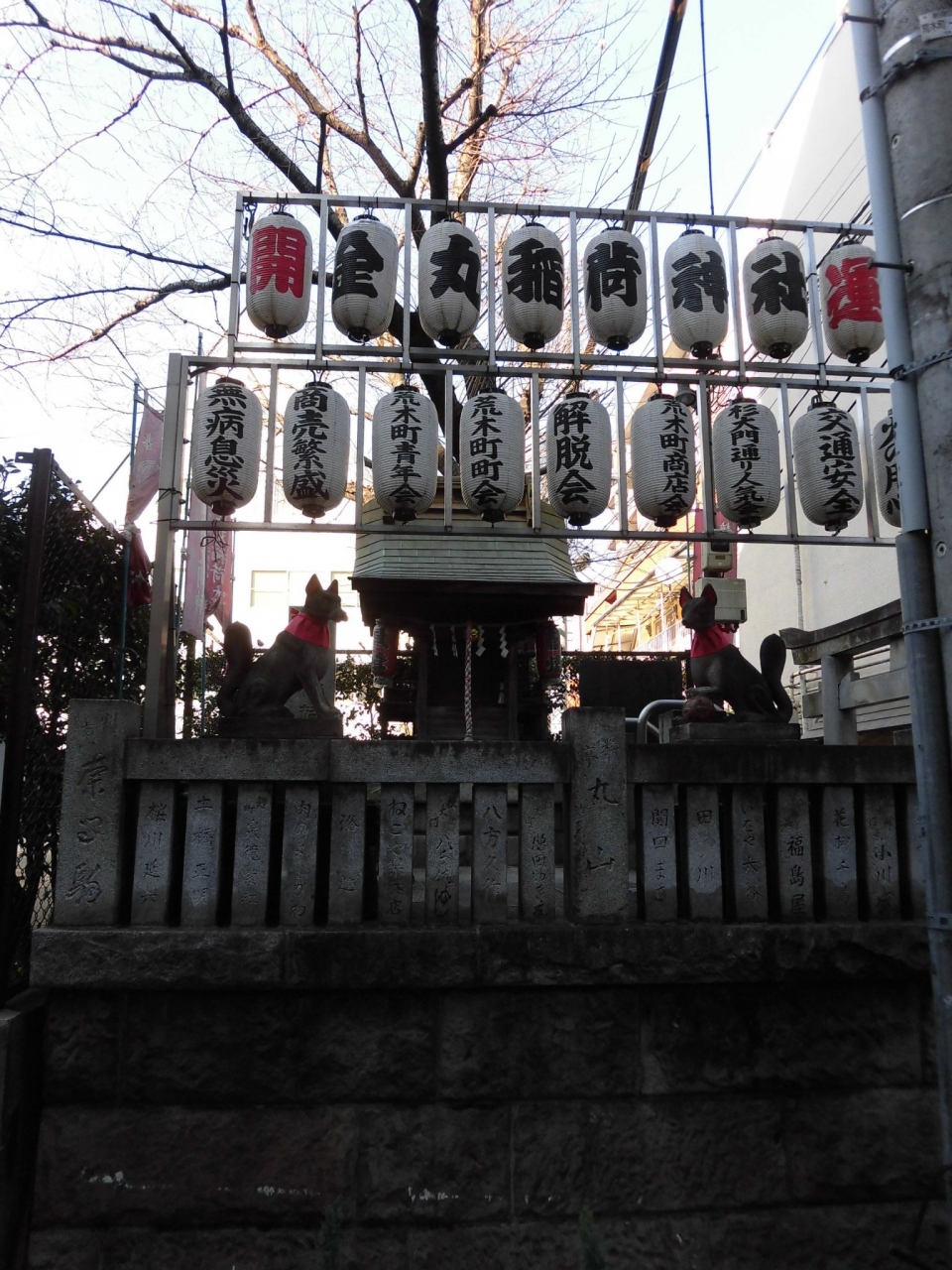 新宿区立荒木町公園に隣接して稲荷神社が祀られていたのでお参りをしました。鳥居とお社の向きが狭い路地に向かっていて、窮屈な感じの神社でした。お社はで小さいですが、凝った意匠になっていて、それなりに風格も感じることができました。