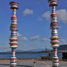 高松港にある名物のモニュメントで、2010年の瀬戸内国際芸術祭の現代アート活動「ART SETOUCHI」に出品された大巻伸嗣氏の作品とのこと。