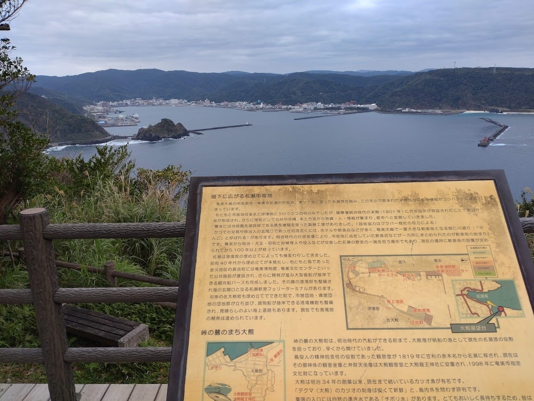 名瀬の港町を一望