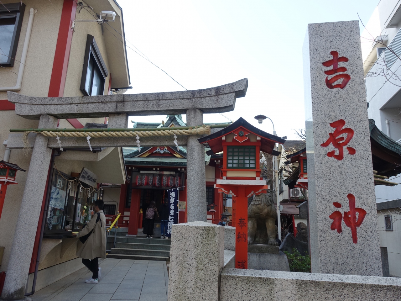 浅草の言問い通り沿いのホテルに宿泊した際、シェアサイクルを利用して千束界隈を散策しました。最初に訪れた吉原神社は浅草名所七福神のひとつで弁財天を祀っています。境内は狭いですが、平日にも関わらず参拝に訪れる方が多く賑わっていました。本殿は想像したよりも新しい感じだったのと、赤い文字で刻まれた標柱が印象に残っています。