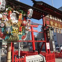 鷲神社は、千束界隈の寺社仏閣のなかではもっとも印象に残るものでした。酉の市で有名ですが、国際通り沿いに神社の入口があり、そこには特大の熊手が飾られていました。また鳥居や標柱、そして本殿まで、すべてのスケールが大きいです。浅草名所七福神のひとつで、寿老人が祀られています。