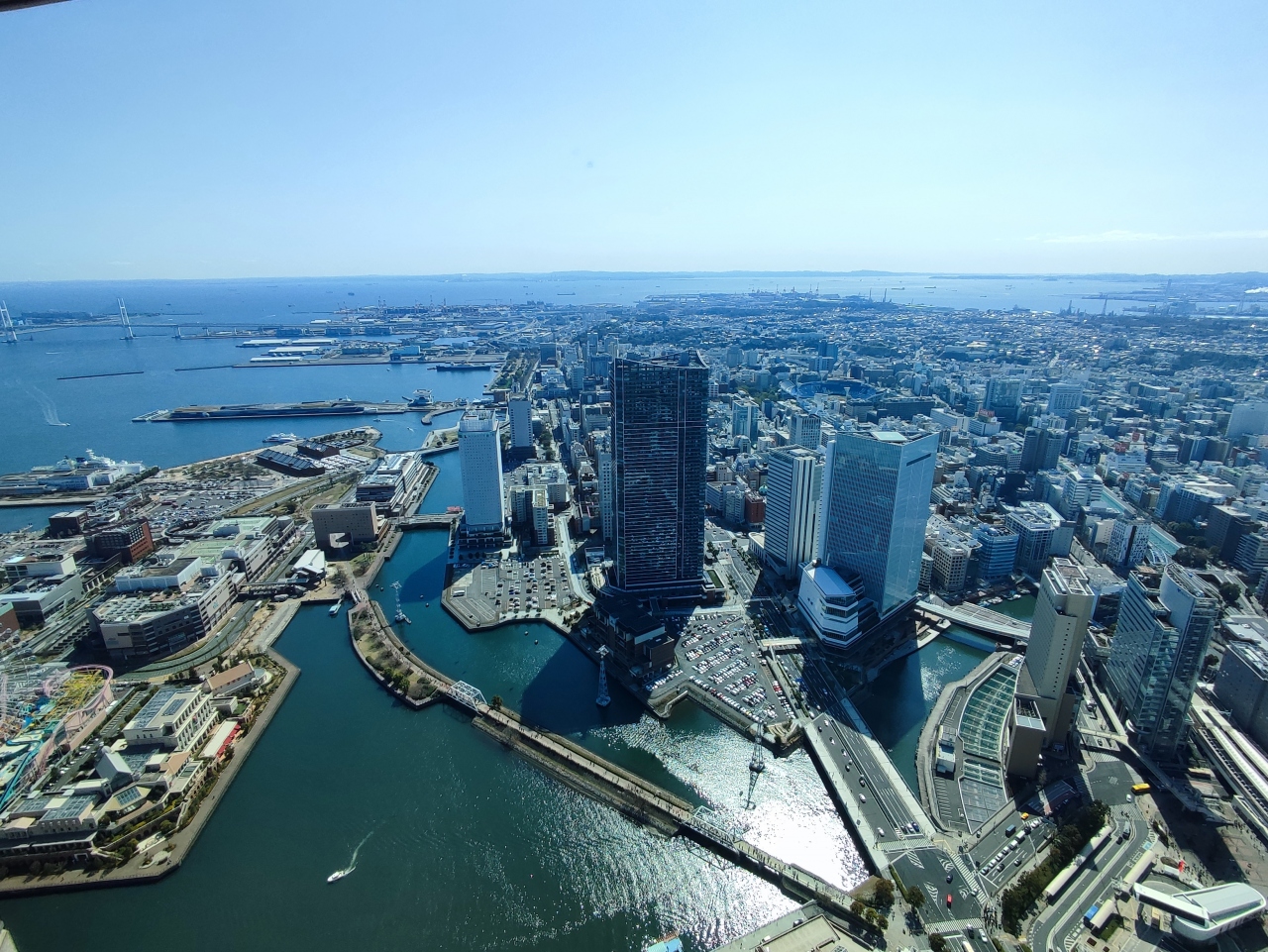 天気が良かったので、横浜港もベイブリッジも横浜スタジアムも大黒ふ頭も良く見えました。横浜駅やみなとみらいも良く見えましたよ。