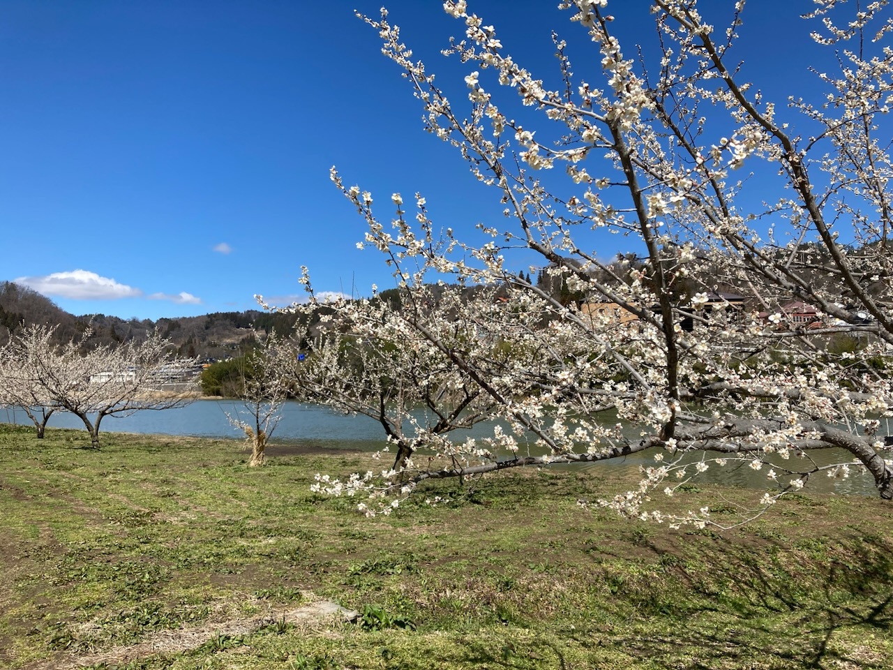 3月下旬から4月上旬には湖畔にあるろうかく梅林の花が咲き誇ります。