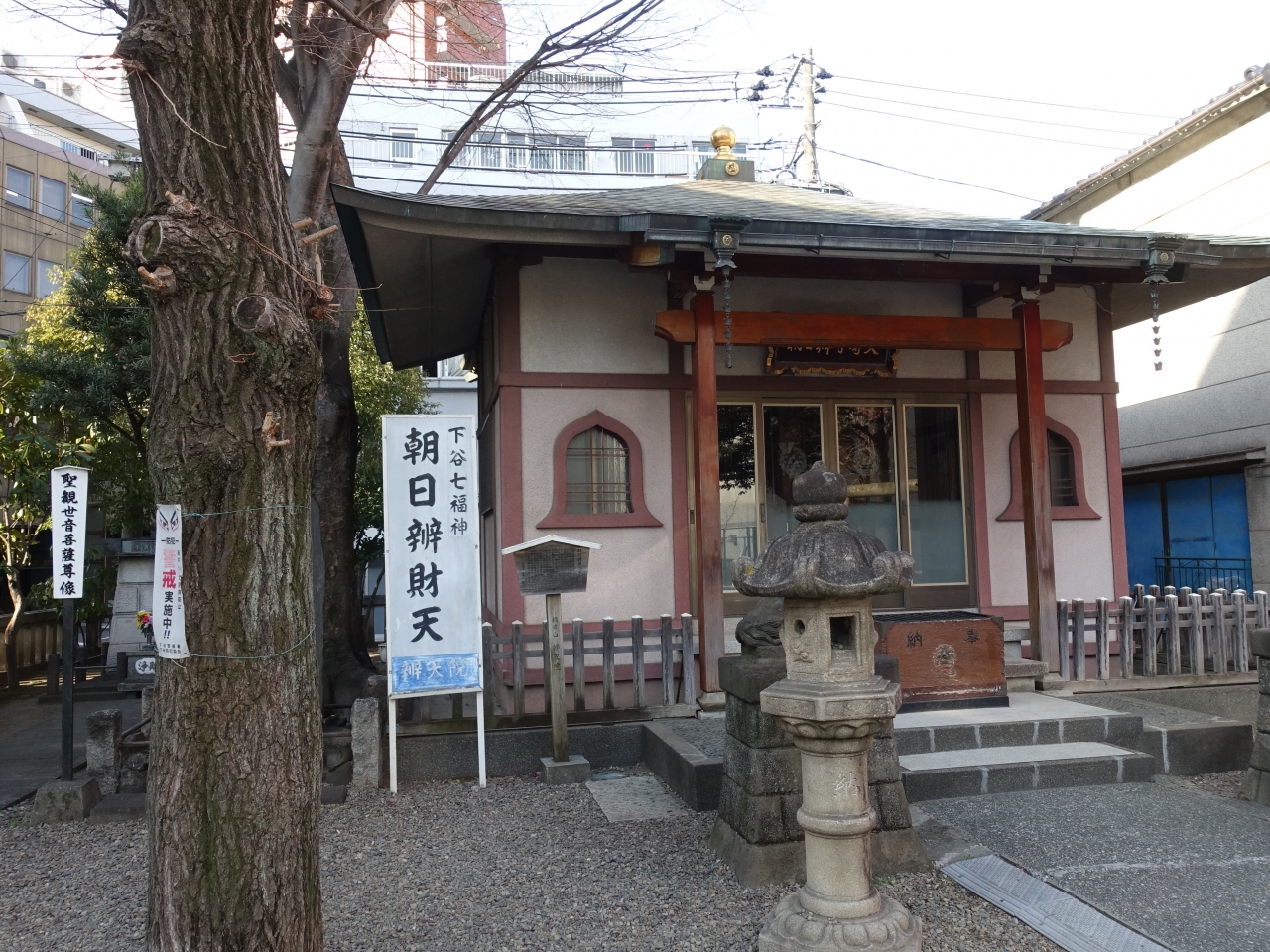 朝日弁天院は地下鉄入谷駅から徒歩5分ほど、水戸街道から少し東に入った住宅街にあります。下谷七福神のひとつで弁財天を祀る曹洞宗寺院ですが、境内は隣接する区立弁天院公園と一体になっているようで、元気に遊ぶ子どもたちの姿が目立ちました。本堂は淡いピンク色の色彩と花頭窓が印象的でした。