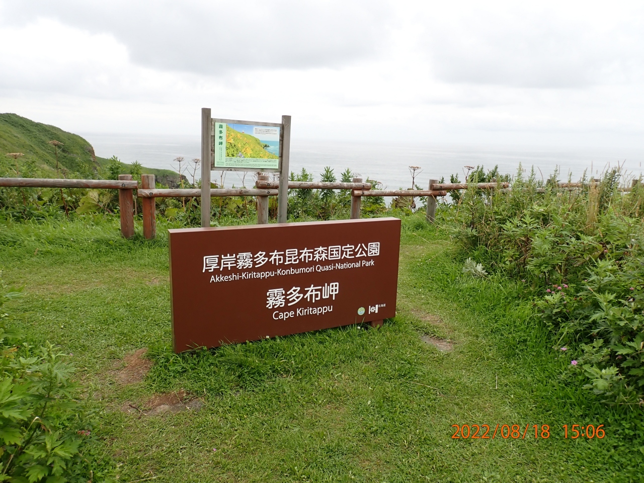 釧路市観光で立ち寄りました。霧多布岬は、正式名称は湯沸岬(とうふつみさき)だそうで、初めて知りました。「きりたっぷ岬」の表示板の「北緯43度の旅」と文字が印象的でした。霧多布岬展望台、霧多布岬キャンプ場、湯沸岬灯台などがあります。野生のラッコが見れるという話の通り3匹でしたが見ることが出来ました。