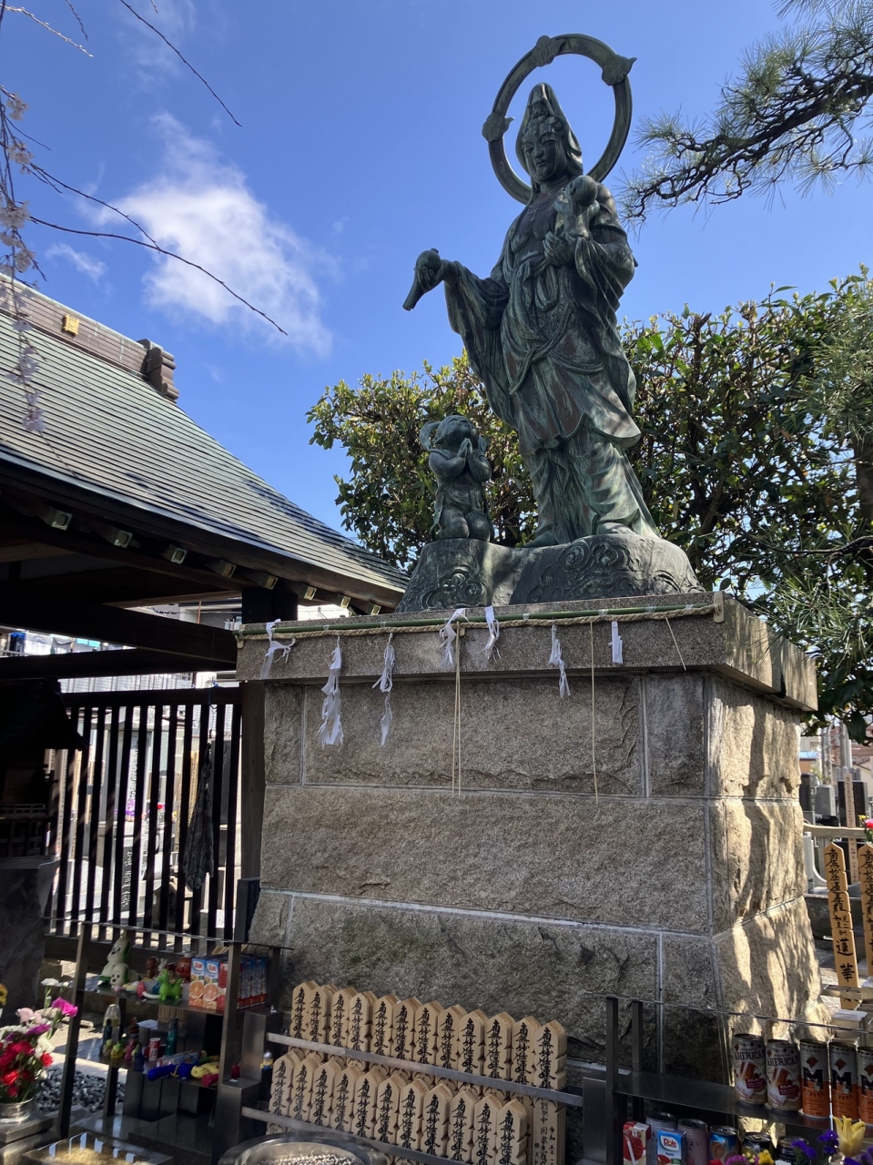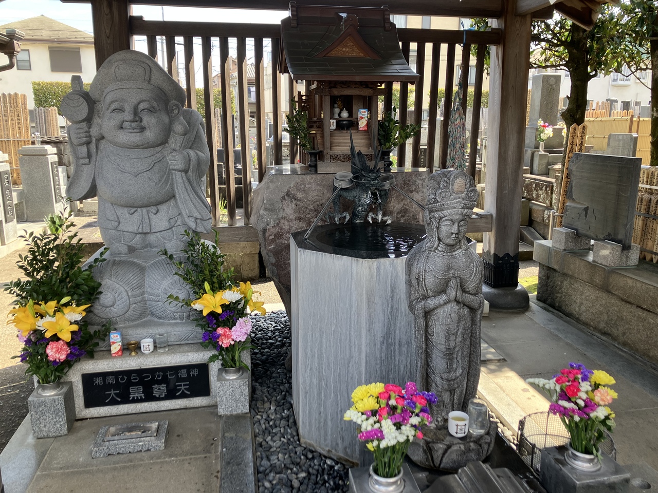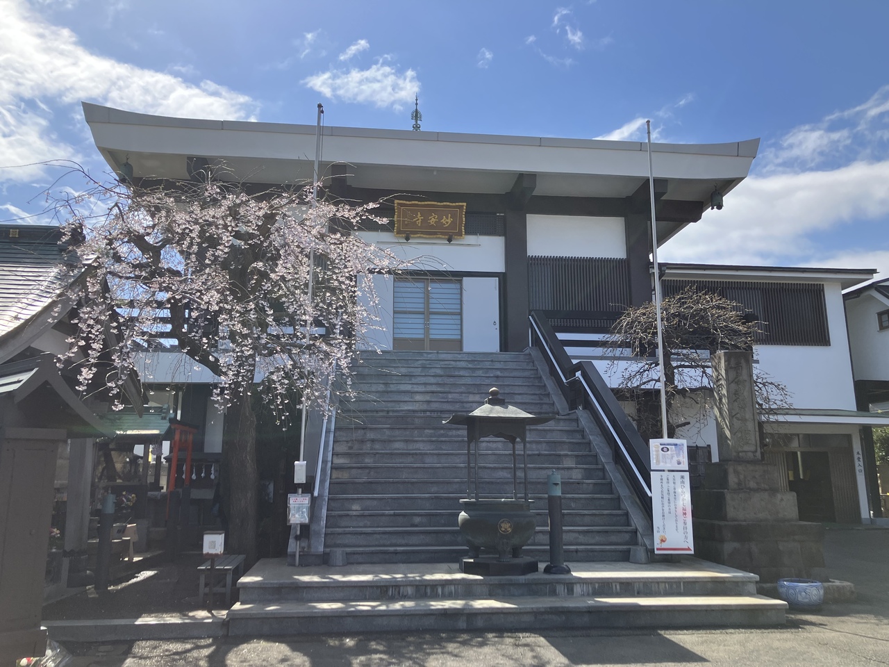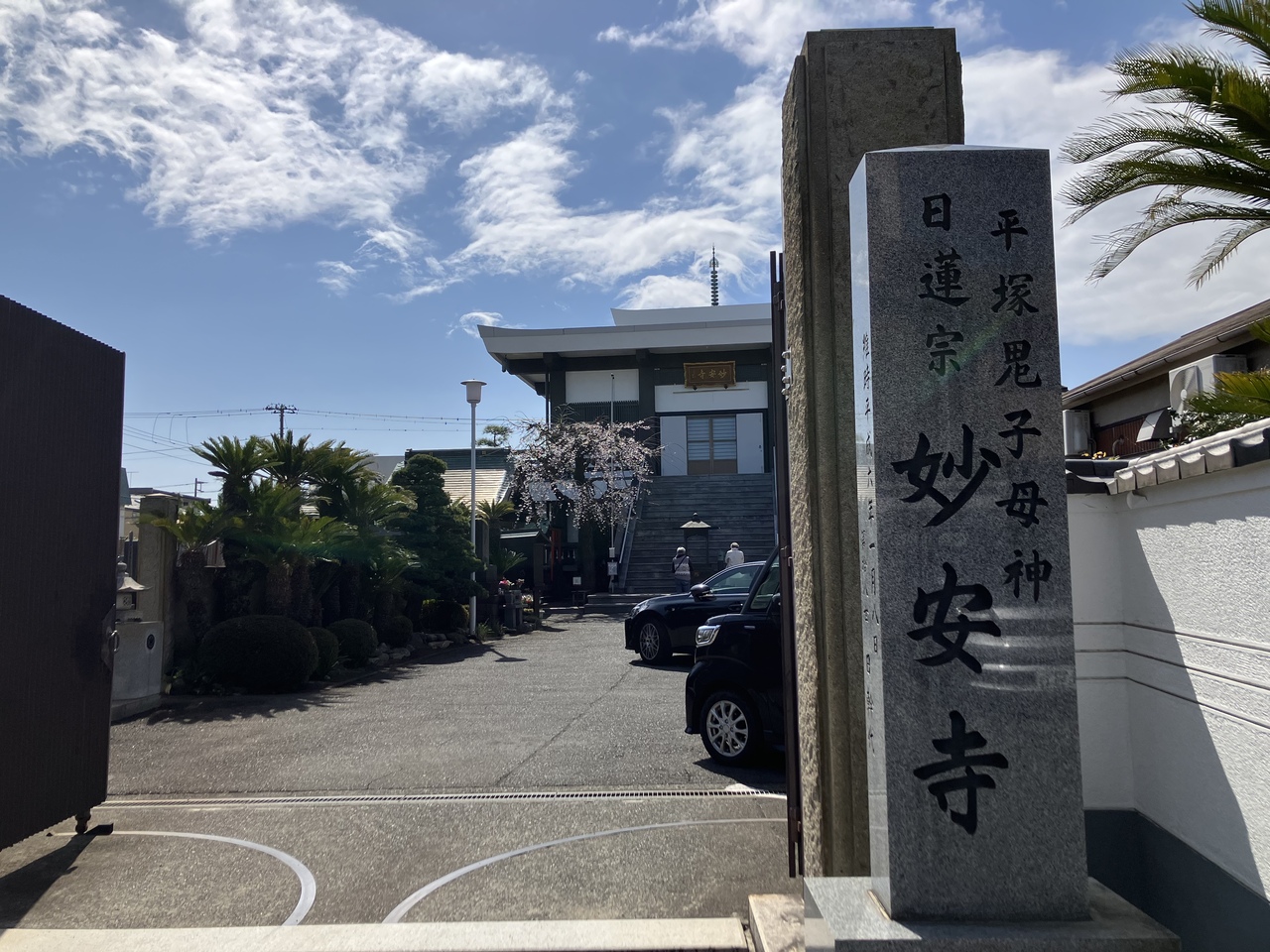 JR東海道線「平塚駅」西口から徒歩で10分ほどです。江戸初期の創建の日蓮宗の寺院です。徳川家康の側室、お万の方の奥女中、妙安尼が開いたと言われます。お万の方の持仏鬼子母神を祀ったため、今では「相州平塚鬼子母神」として知られています。また「ひらつか平塚七福神」の大黒天を祀る寺でもあります。本堂前の桜が上品に咲いていました。