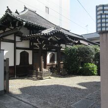 外苑西通り・大木戸坂下信号近くに建つ浄土宗の寺院です。裏門にあたる木造の門は趣が感じられ、本堂には唐破風と花頭窓が備えられています。本堂から庫裡に向かう入口にも木造の門が造られています。周辺の寺は近代的な鉄筋コンクリート造りということもあり、寺らしさが感じられる落ち着いた寺という印象でした。