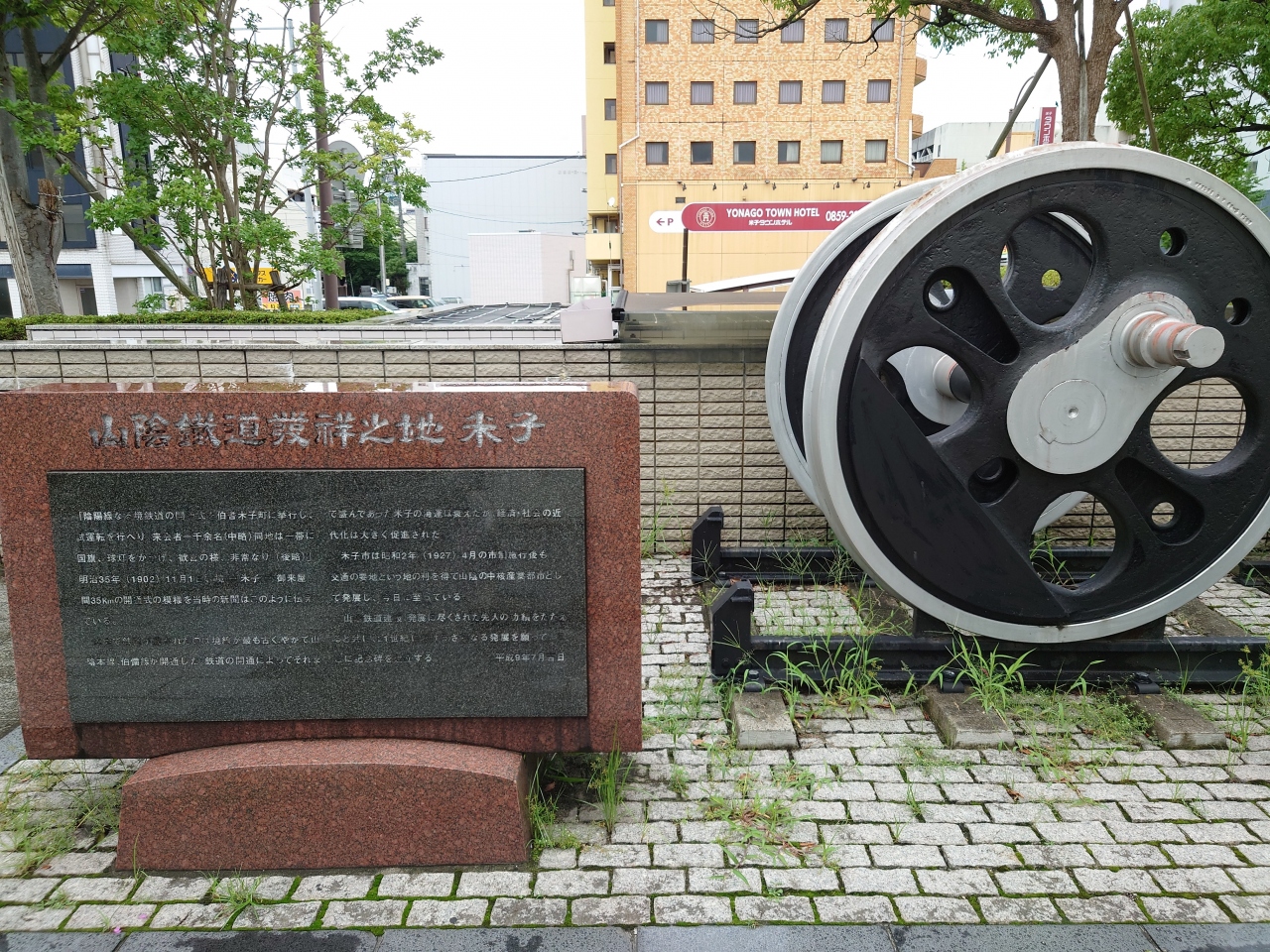 米子駅前にある動輪の碑